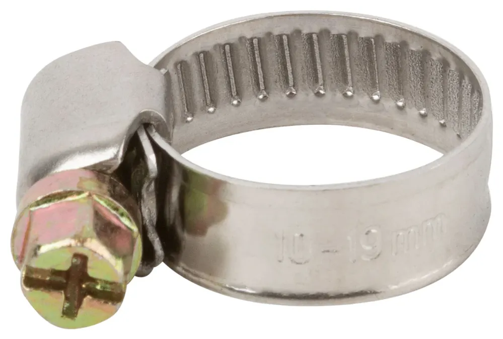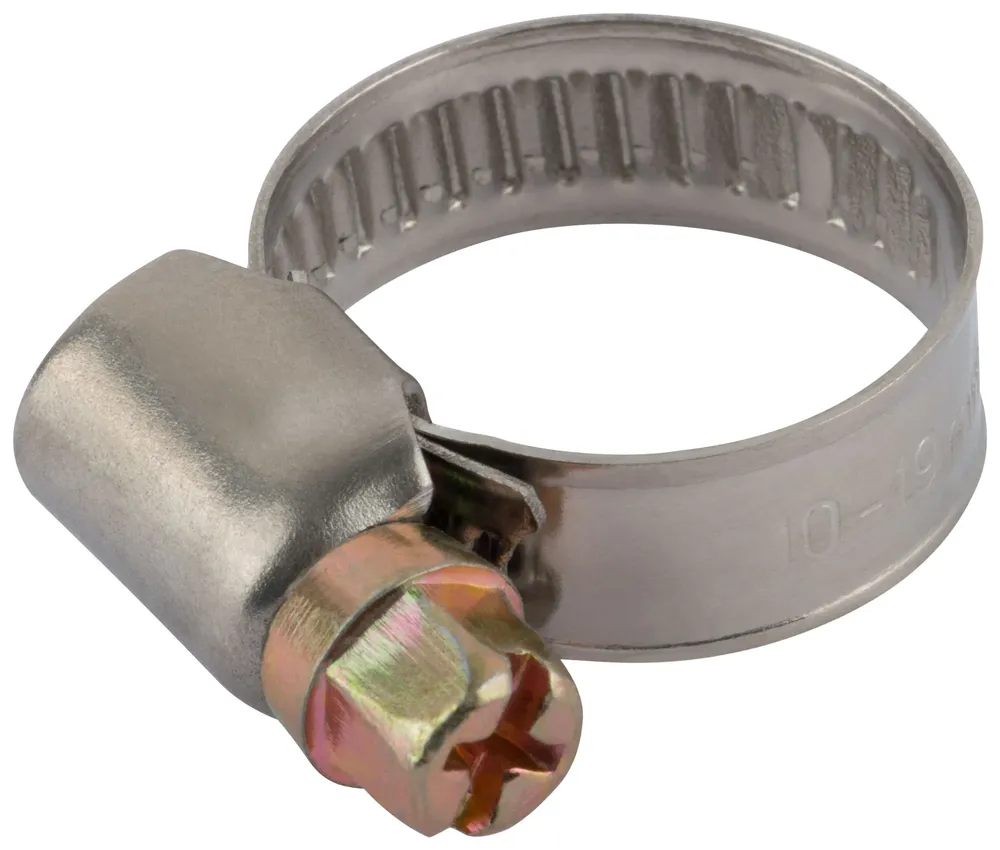 Хомут обжимной (нержавеющая сталь со сваркой) 10-19 мм — крепёжный элемент для монтажа, фиксации и сборки конструкций.
