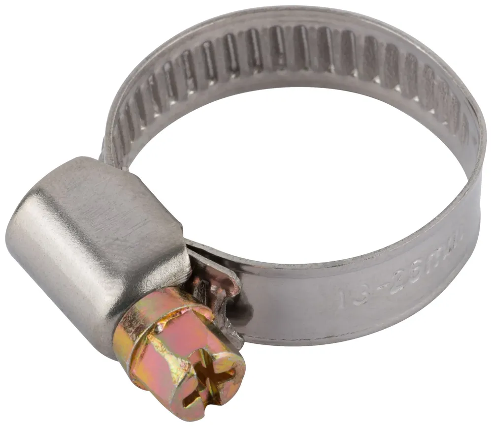 Хомут обжимной (нержавеющая сталь со сваркой) 13-26 мм — крепёжный элемент для монтажа, фиксации и сборки конструкций.