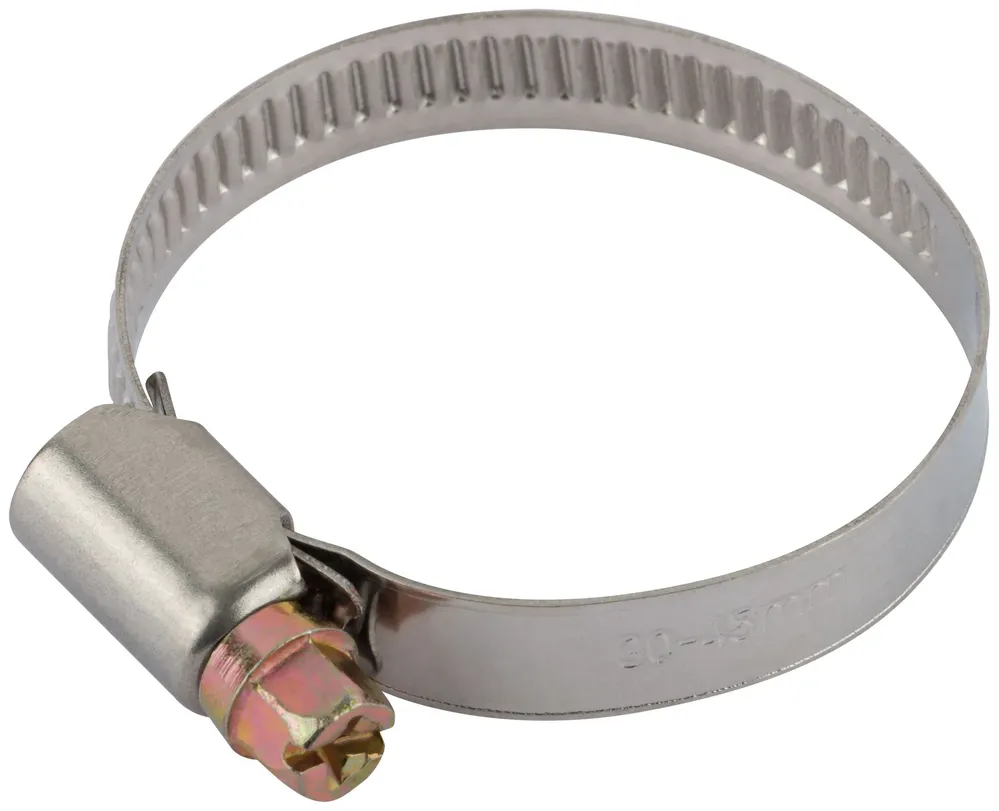 Хомут обжимной (нержавеющая сталь со сваркой) 30-45 мм — крепёжный элемент для монтажа, фиксации и сборки конструкций.