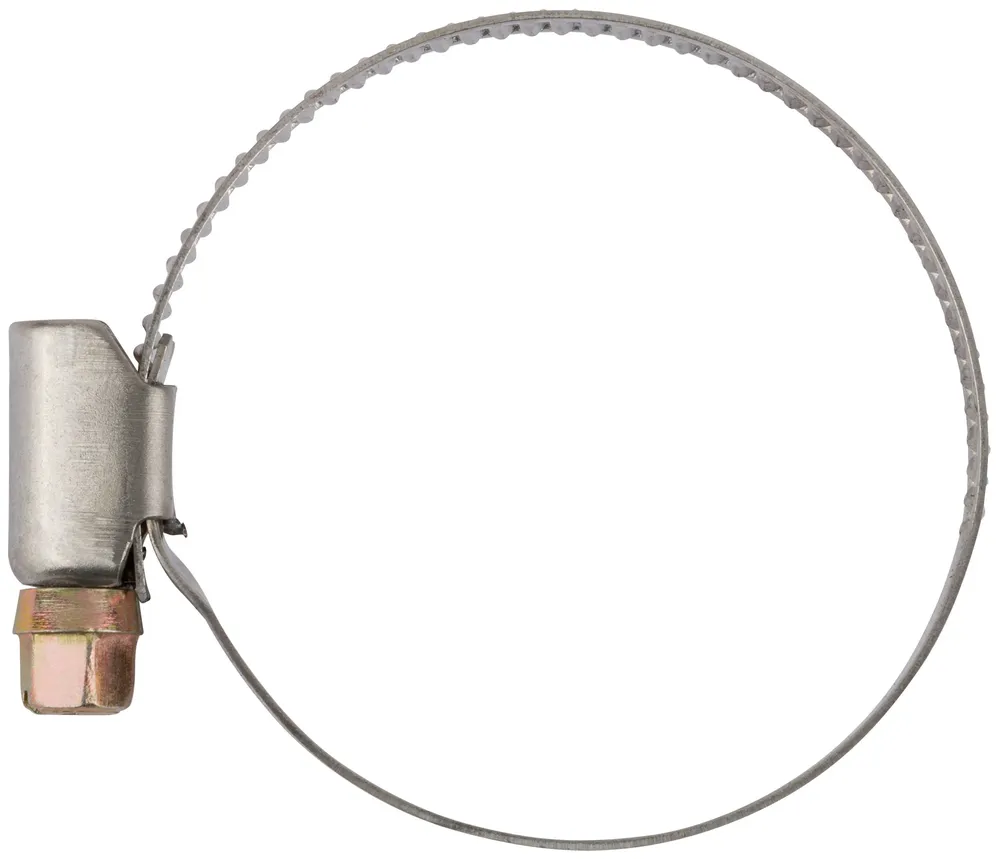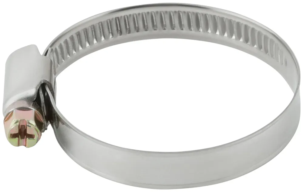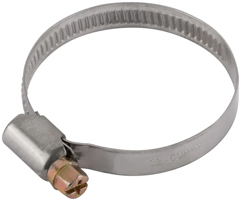 Хомут обжимной (нержавеющая сталь со сваркой) 32-50 мм — крепёжный элемент для монтажа, фиксации и сборки конструкций.