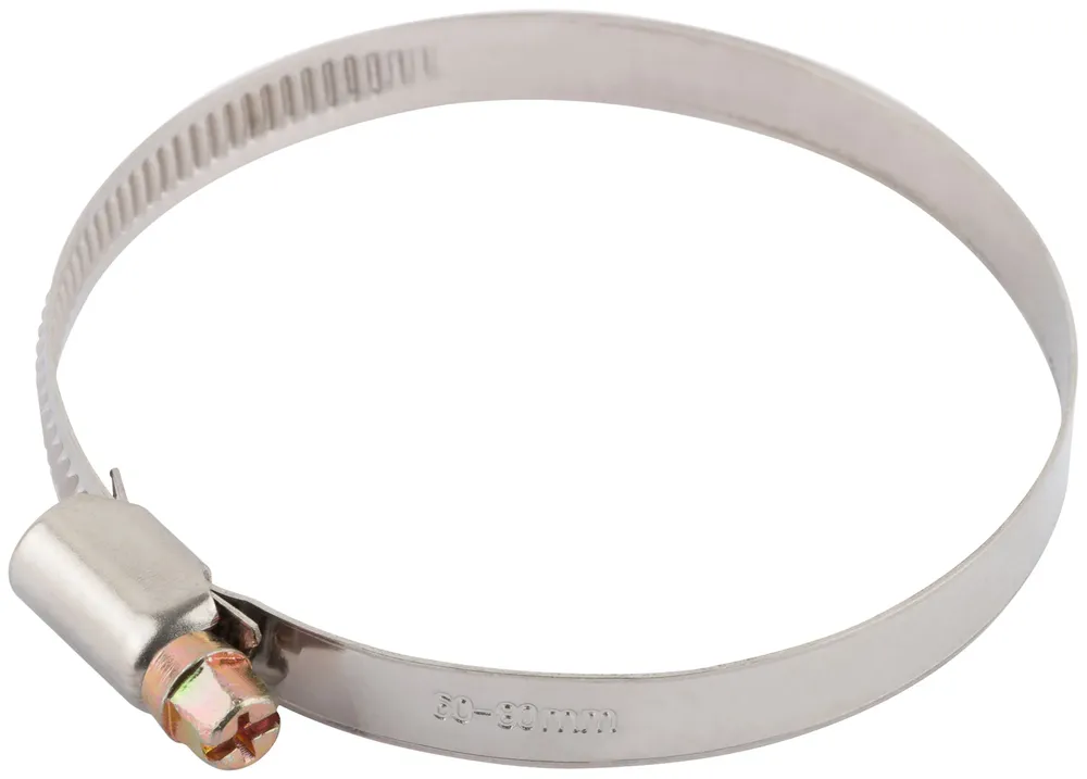 Хомут обжимной (нержавеющая сталь со сваркой) 60-80 мм — крепёжный элемент для монтажа, фиксации и сборки конструкций.