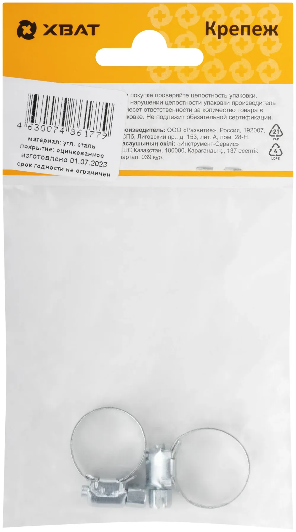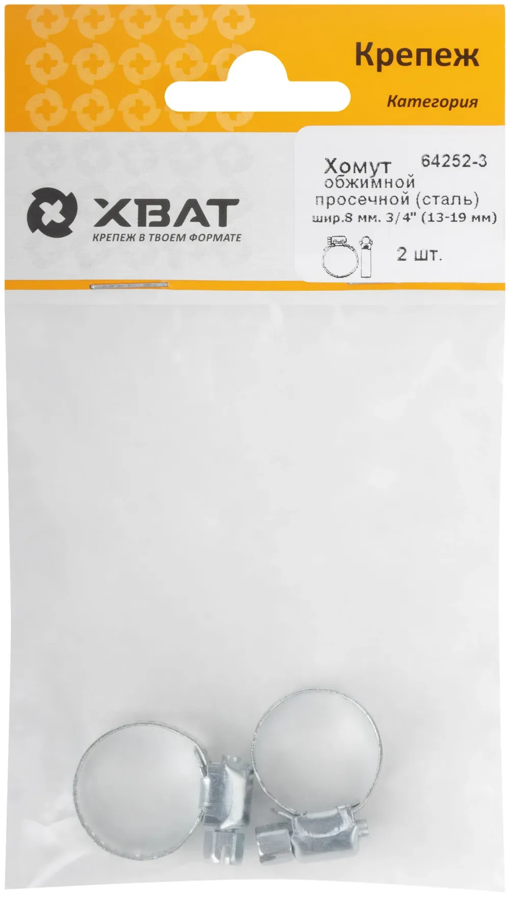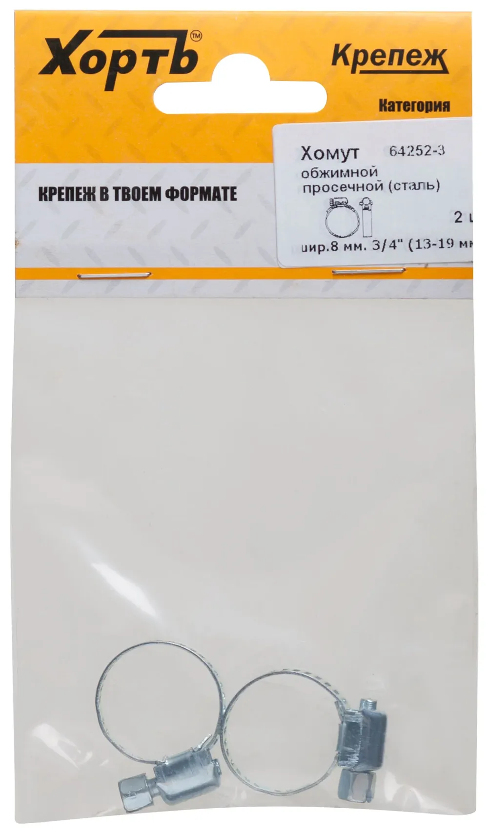 Хомут обжимной просечной (оцинкованная сталь) шир.8 мм. 3/4" (13-19 мм) (фасовка 2 10.) — крепёжный элемент для монтажа, фиксации и сборки конструкций.