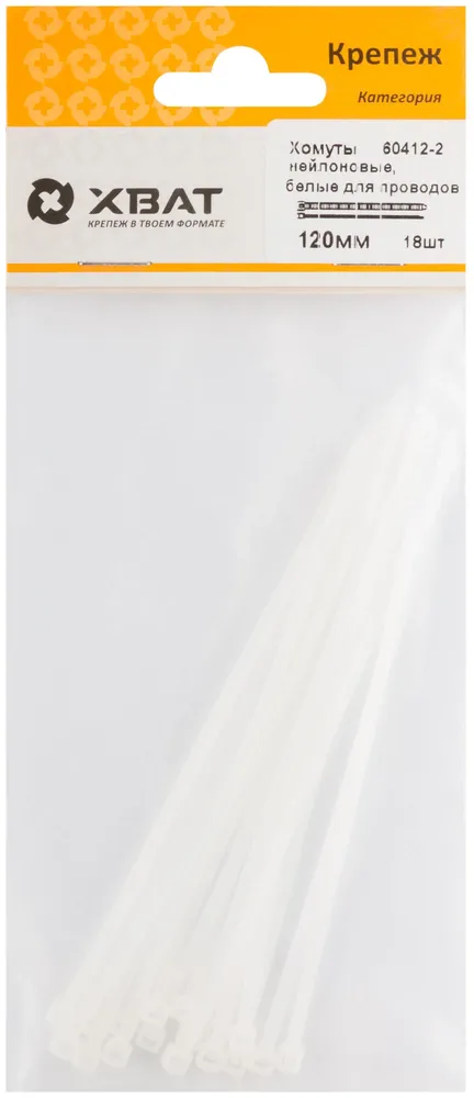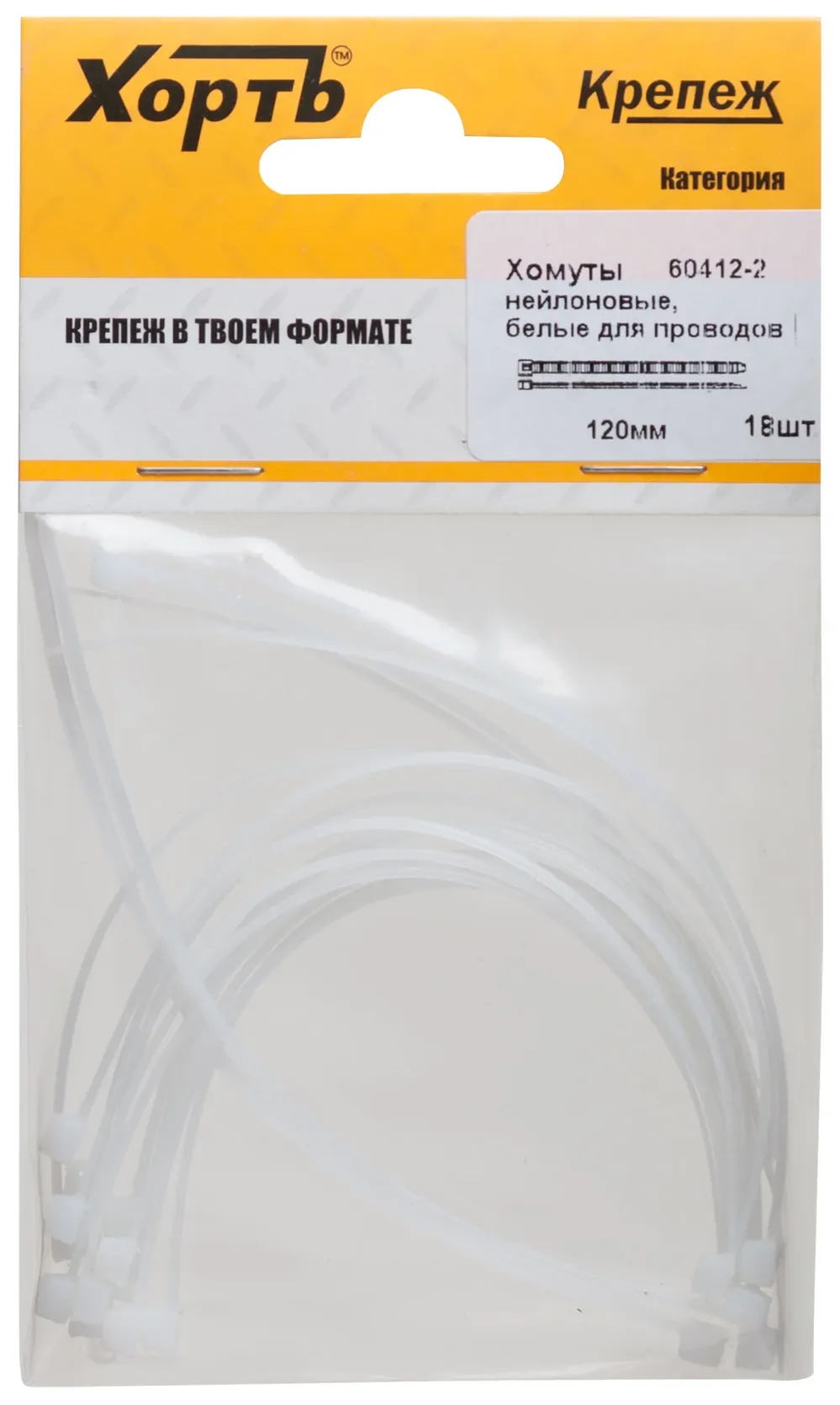 Хомуты нейлоновые, белые для проводов, 120 мм (фасовка 18 10) — крепёжный элемент для монтажа, фиксации и сборки конструкций.