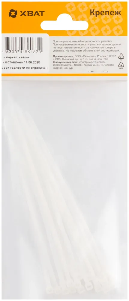 Купить недорого Хомуты нейлоновые, белые для проводов, 120 мм (фасовка 18 10) в Москве
