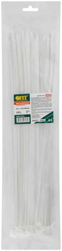 Хомуты нейлоновые для проводов, белые 100 10., 4,8х400 мм — крепёжный элемент для монтажа, фиксации и сборки конструкций.