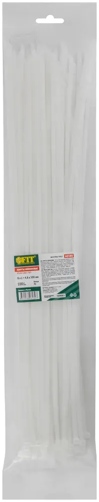 Хомуты нейлоновые для проводов, белые 100 10., 4,8х500 мм — крепёжный элемент для монтажа, фиксации и сборки конструкций.