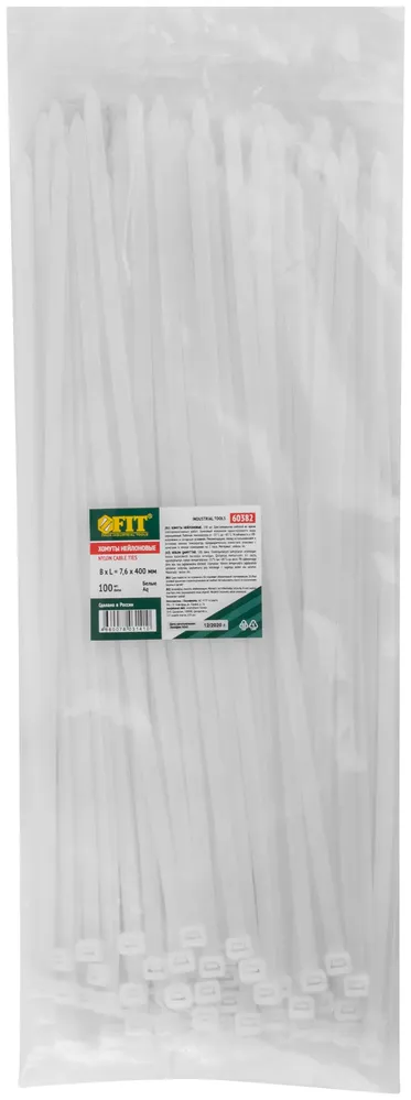 Хомуты нейлоновые для проводов, белые 100 10., 7,6х400 мм — крепёжный элемент для монтажа, фиксации и сборки конструкций.