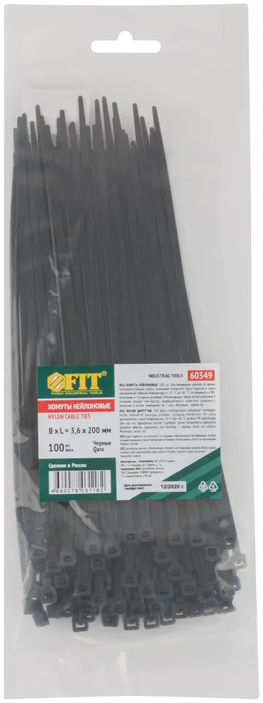 Хомуты нейлоновые для проводов, черные 100 10., 3,6х200 мм — крепёжный элемент для монтажа, фиксации и сборки конструкций.