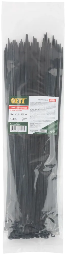 Хомуты нейлоновые для проводов, черные 100 10., 3,6х300 мм — крепёжный элемент для монтажа, фиксации и сборки конструкций.