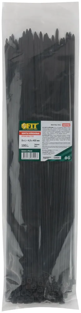 Хомуты нейлоновые для проводов, черные 100 10., 4,8х400 мм — крепёжный элемент для монтажа, фиксации и сборки конструкций.