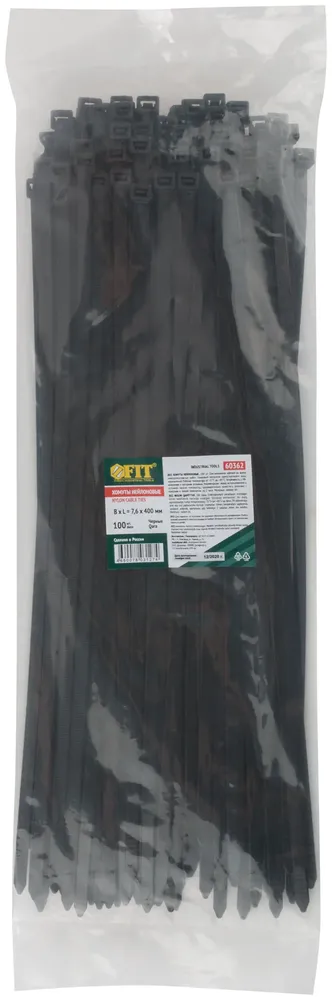 Хомуты нейлоновые для проводов, черные 100 10., 7,6х400 мм — крепёжный элемент для монтажа, фиксации и сборки конструкций.