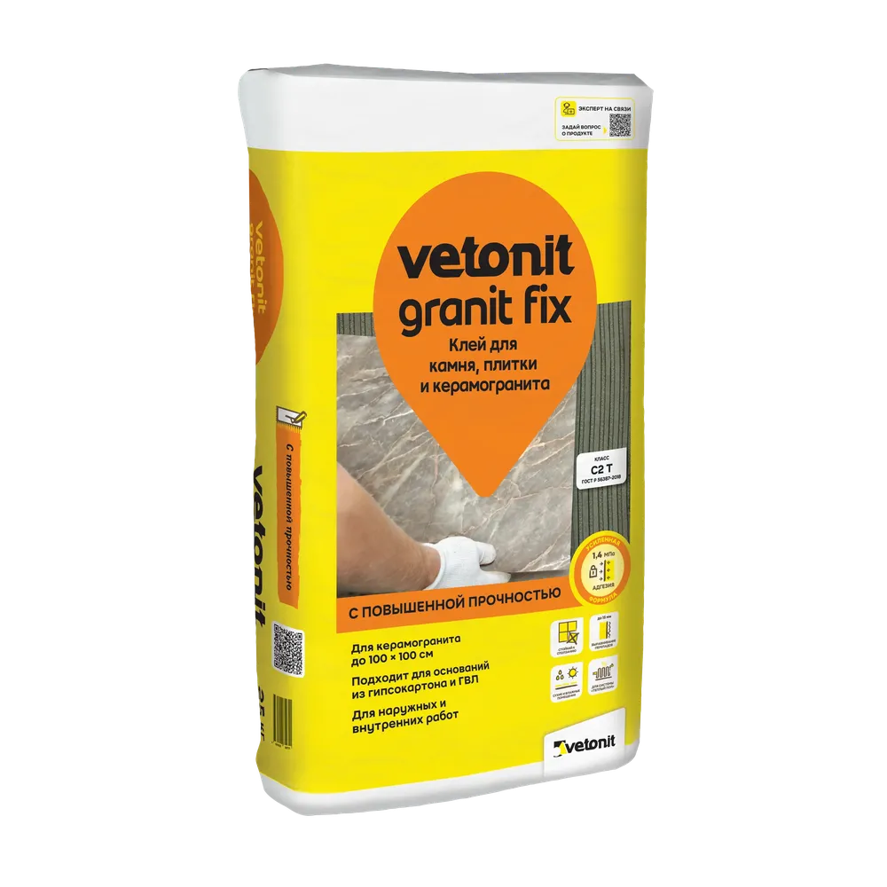 Клей для керамогранита Ветонит гранит фикс C2 Vetonit granit fix C2, 25 кг — материал для отделочных работ для подготовки, укладки и финишной отделки поверхностей.