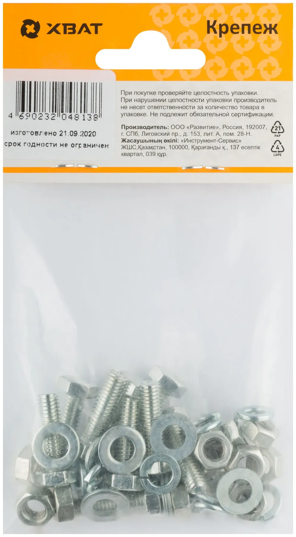 Комплект:Болт DIN933 6х20, с гайкой М6 DIN934, шайбой М 6 DIN125, шайбой пруж. М6 DIN127 (фасовка 1 — крепёжный элемент для монтажа, фиксации и сборки конструкций.