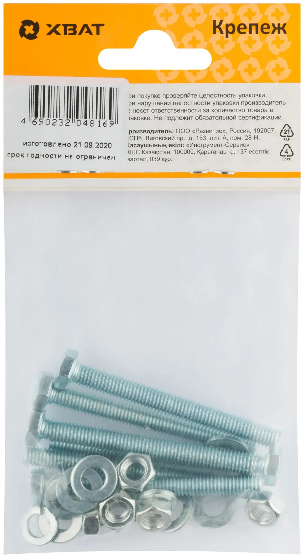 Купить недорого Комплект:Болт DIN933 6х60, с гайкой М6 DIN934, шайбой М 6 DIN125, шайбой пруж. М6 DIN127 (фасовка 6 в Москве