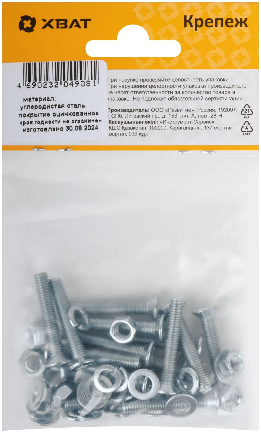 Купить недорого Комплект: Винт DIN965 5х30, с гайкой М5 DIN934, шайбой М 5 DIN125, шайбой М 5 DIN127 (фасовка 1410 в Москве