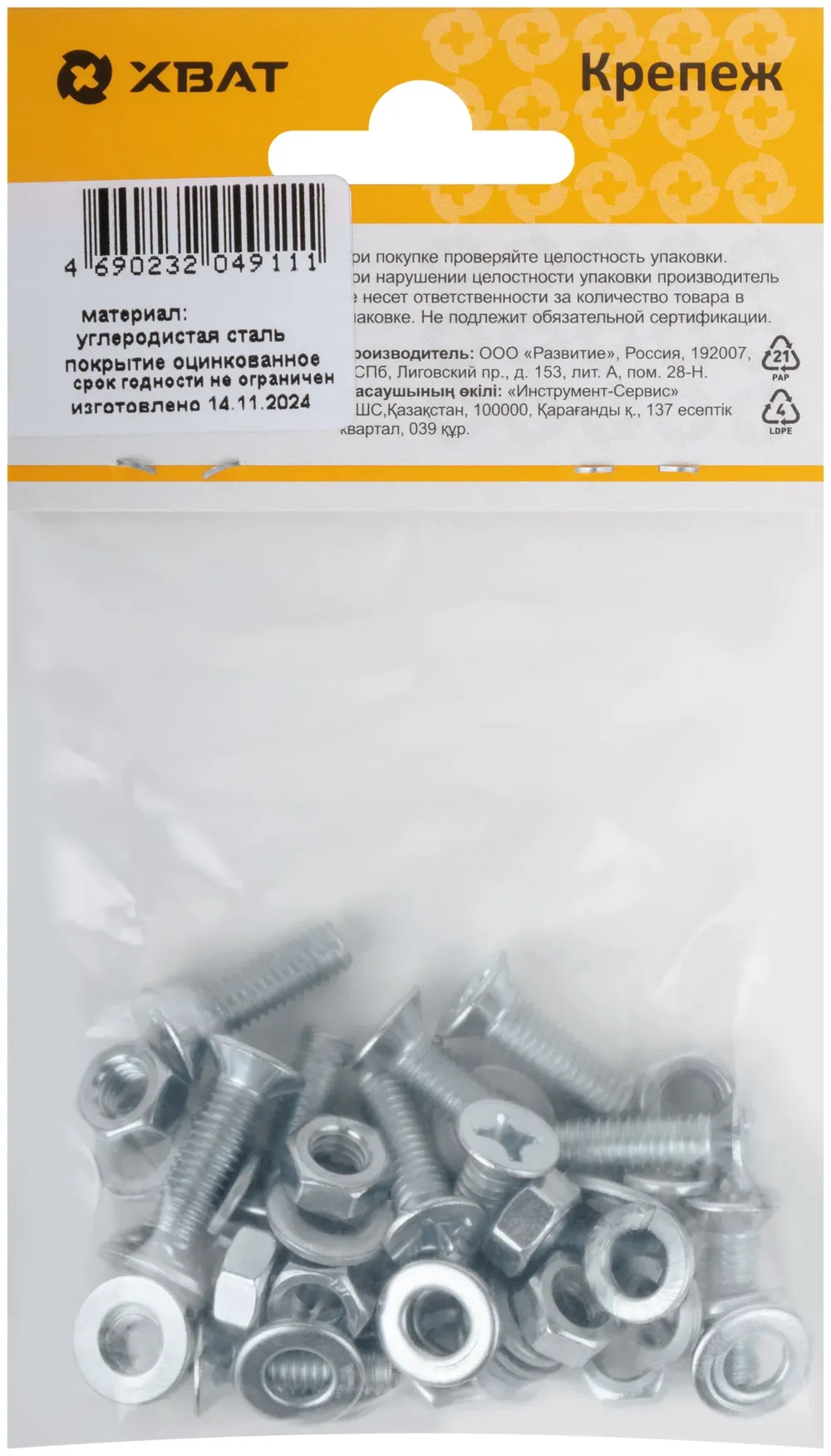 Купить недорого Комплект: Винт DIN965 6х20, с гайкой М6 DIN934, шайбой М 6 DIN125, шайбой М 6 DIN127 (фасовка 1210 в Москве