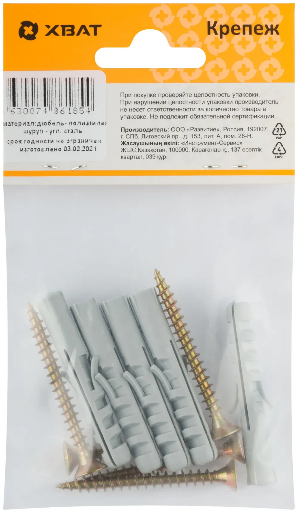 Купить недорого Крепление для плинтусов.Комплект: дюбель с шурупом 8х50/5х50 (фасовка 5 10.) в Москве