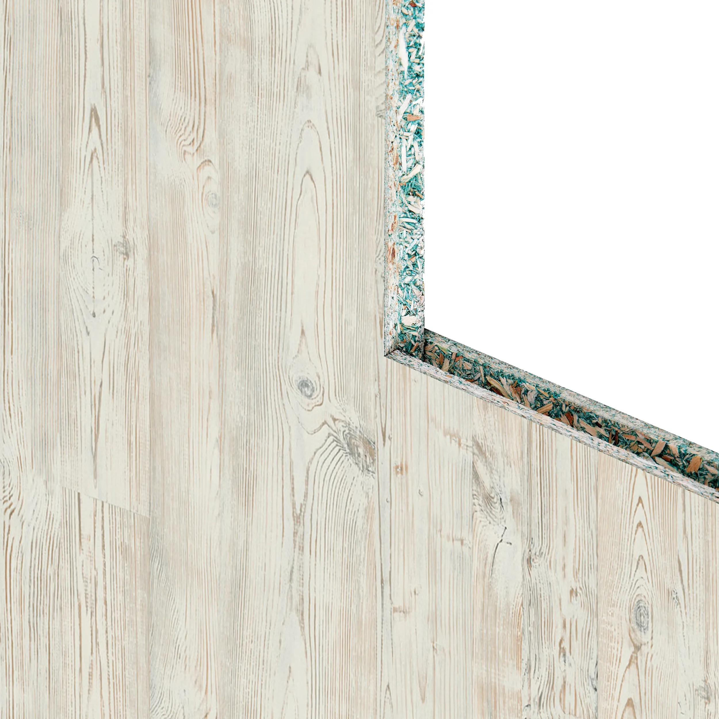 Строительная плита Quick Deck Plus Наоми 16 мм имеют лаконичный декор, выполненный из сосновых досок разной ширины. Ритмичный дизайн создает ярко-выраженную динамику благодаря тому, что эти доски примыкают друг к другу. Визуальный эффект растрескиваний только дополняет натуральность дизайна ламинированной ДСП. В данной светлой гамме видны цветовые контрасты среди теплых и холодных оттенков. Дизайн напольного покрытия плавно перемещается на второстепенный план, но также он создаёт фон для персонального и интересного интерьера.