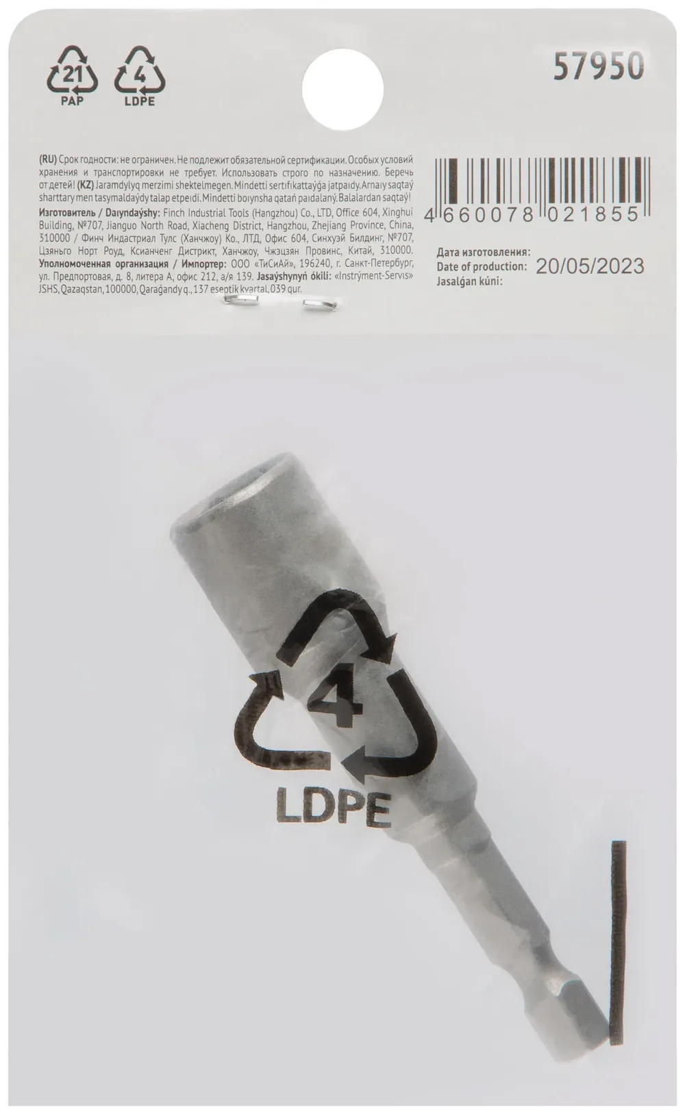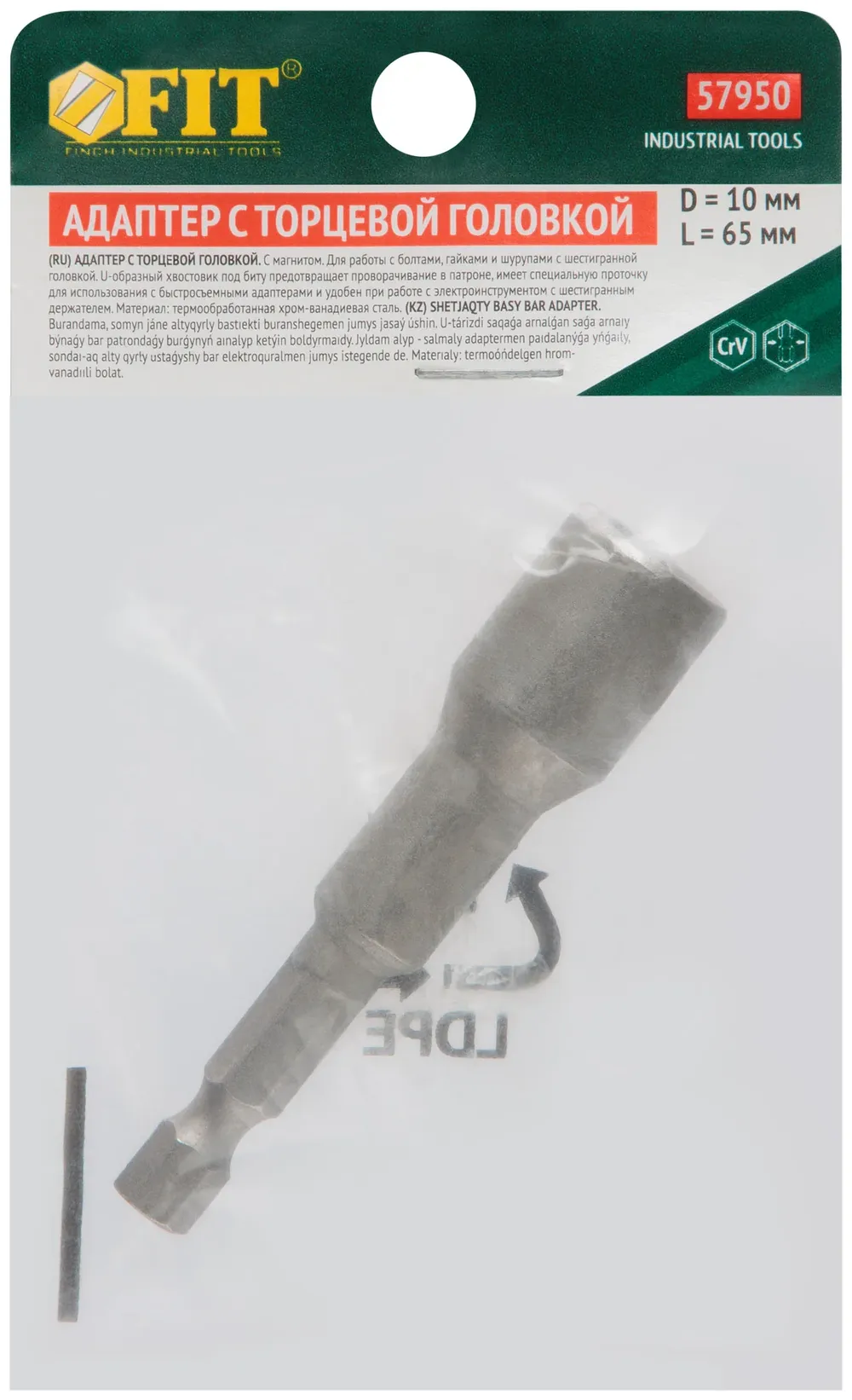 Насадка для шурупов и болтов с 6-гр.головкой Профи d=10 мм, L=65 мм — крепёжный элемент для монтажа, фиксации и сборки конструкций.
