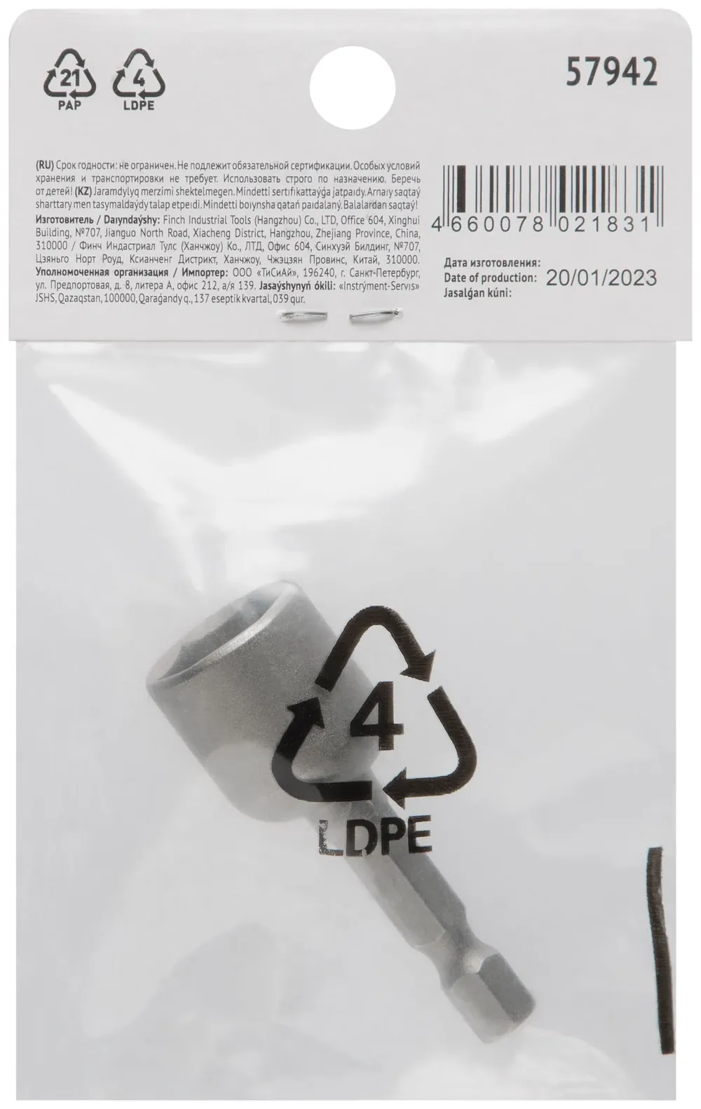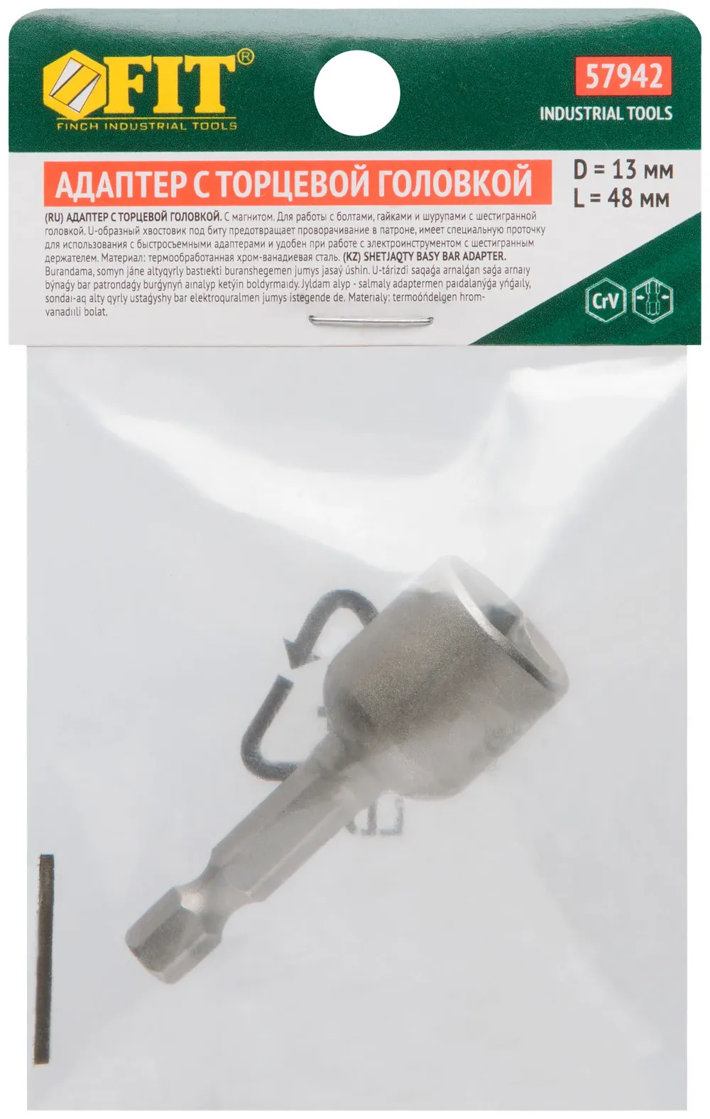 Насадка для шурупов и болтов с 6-гр.головкой Профи d=13 мм, L=48 мм — крепёжный элемент для монтажа, фиксации и сборки конструкций.