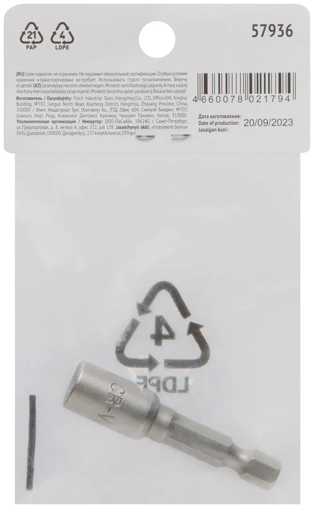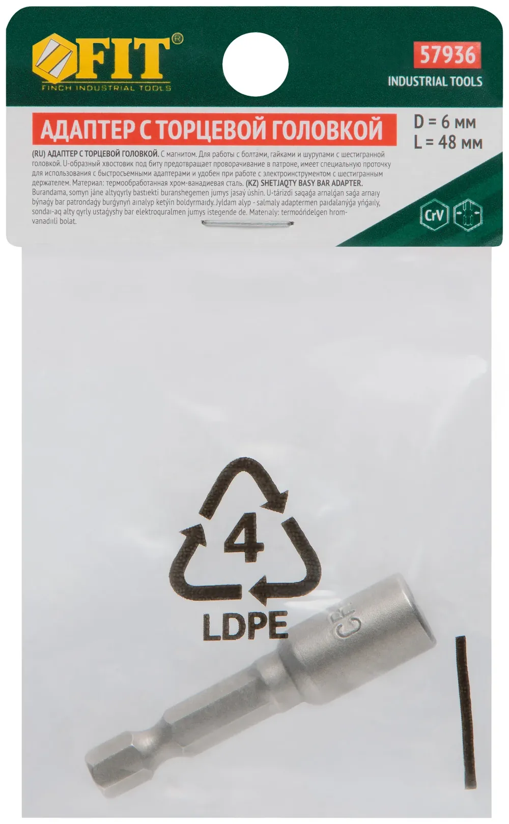 Насадка для шурупов и болтов с 6-гр.головкой Профи d=6 мм, L=48 мм — крепёжный элемент для монтажа, фиксации и сборки конструкций.