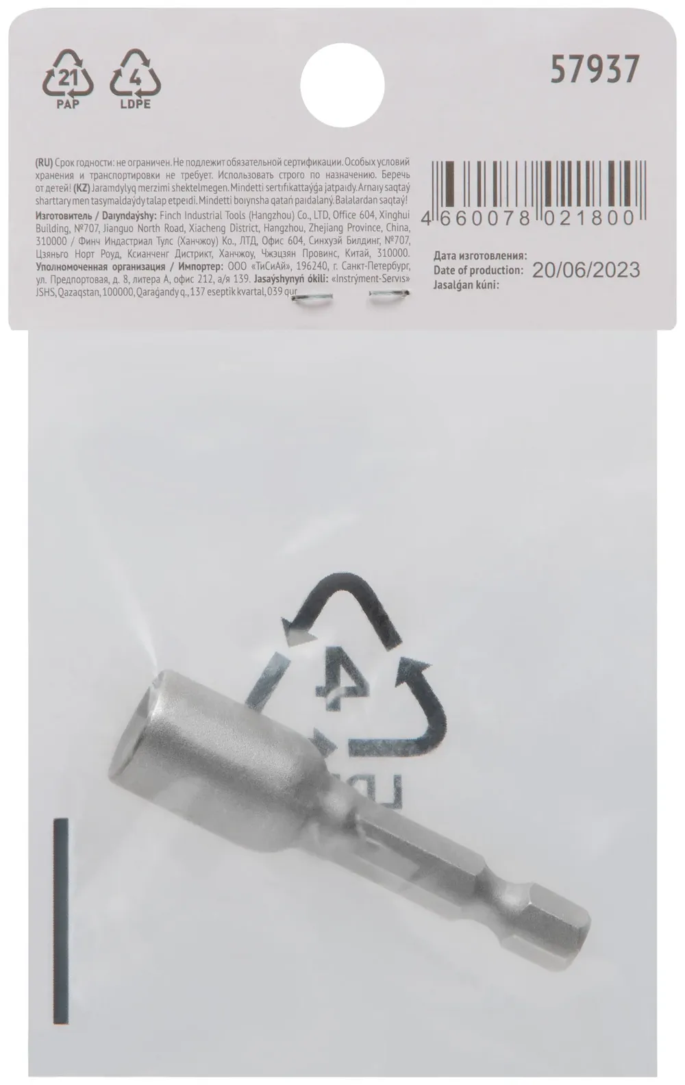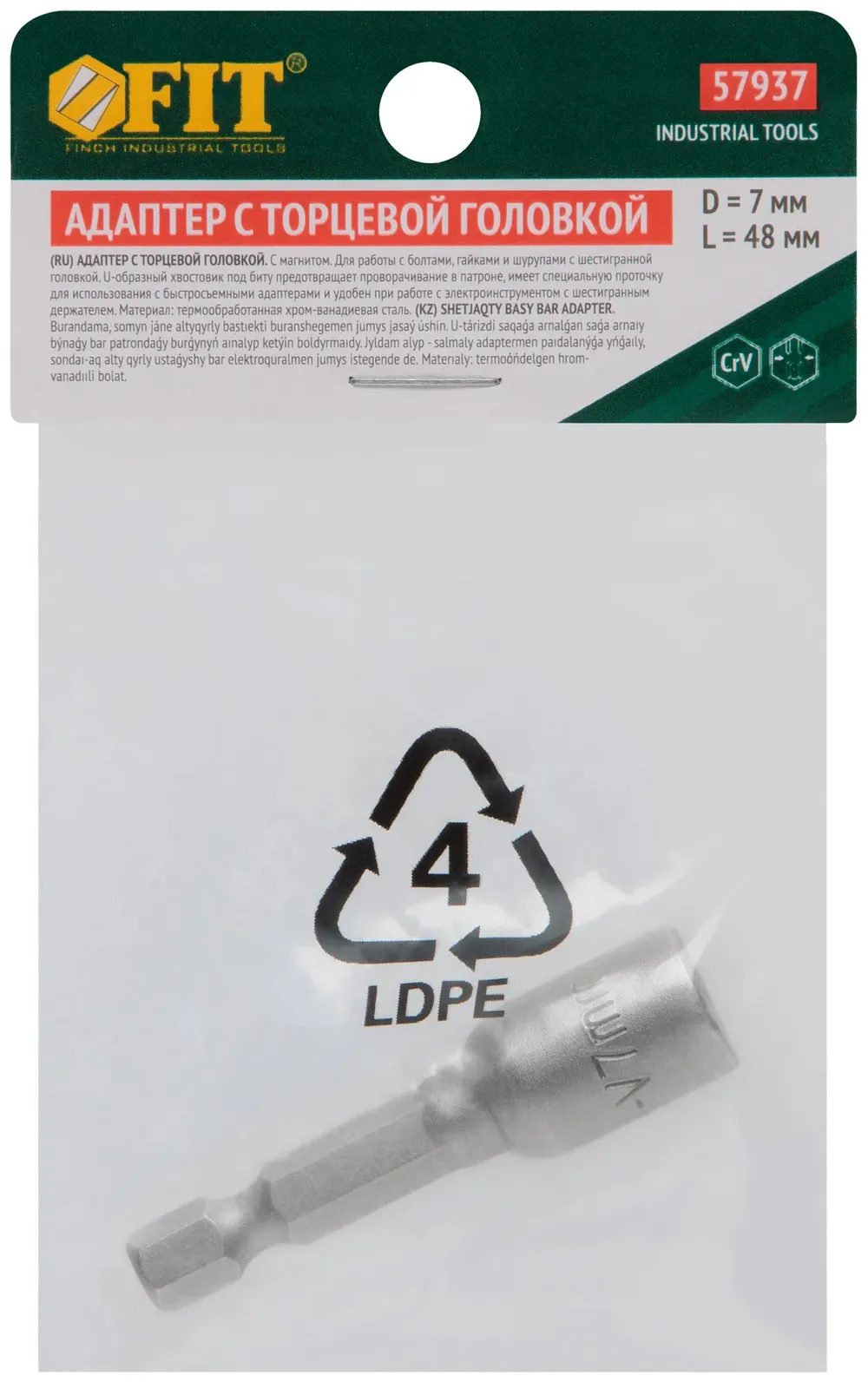 Насадка для шурупов и болтов с 6-гр.головкой Профи d=7 мм, L=48 мм — крепёжный элемент для монтажа, фиксации и сборки конструкций.