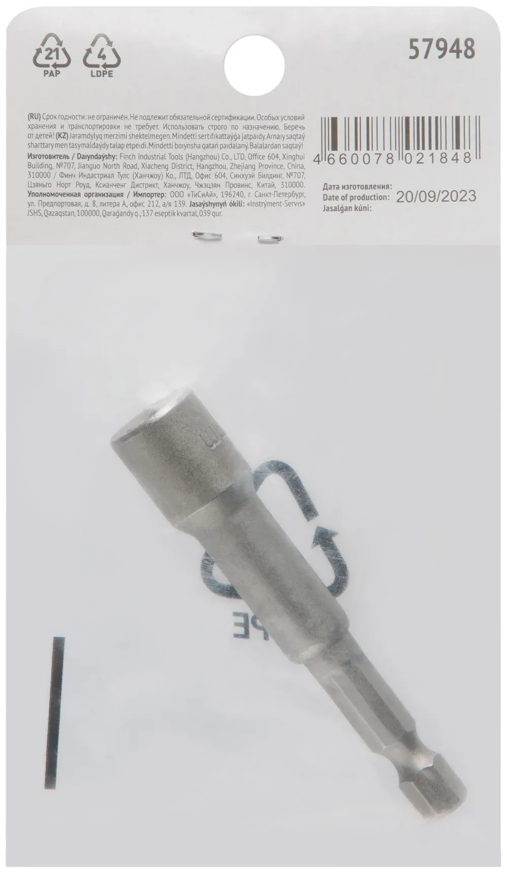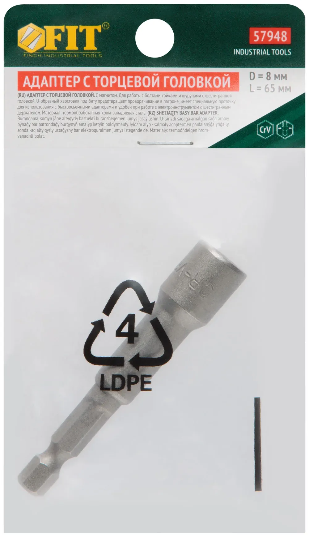 Насадка для шурупов и болтов с 6-гр.головкой Профи d=8 мм, L=65 мм — крепёжный элемент для монтажа, фиксации и сборки конструкций.
