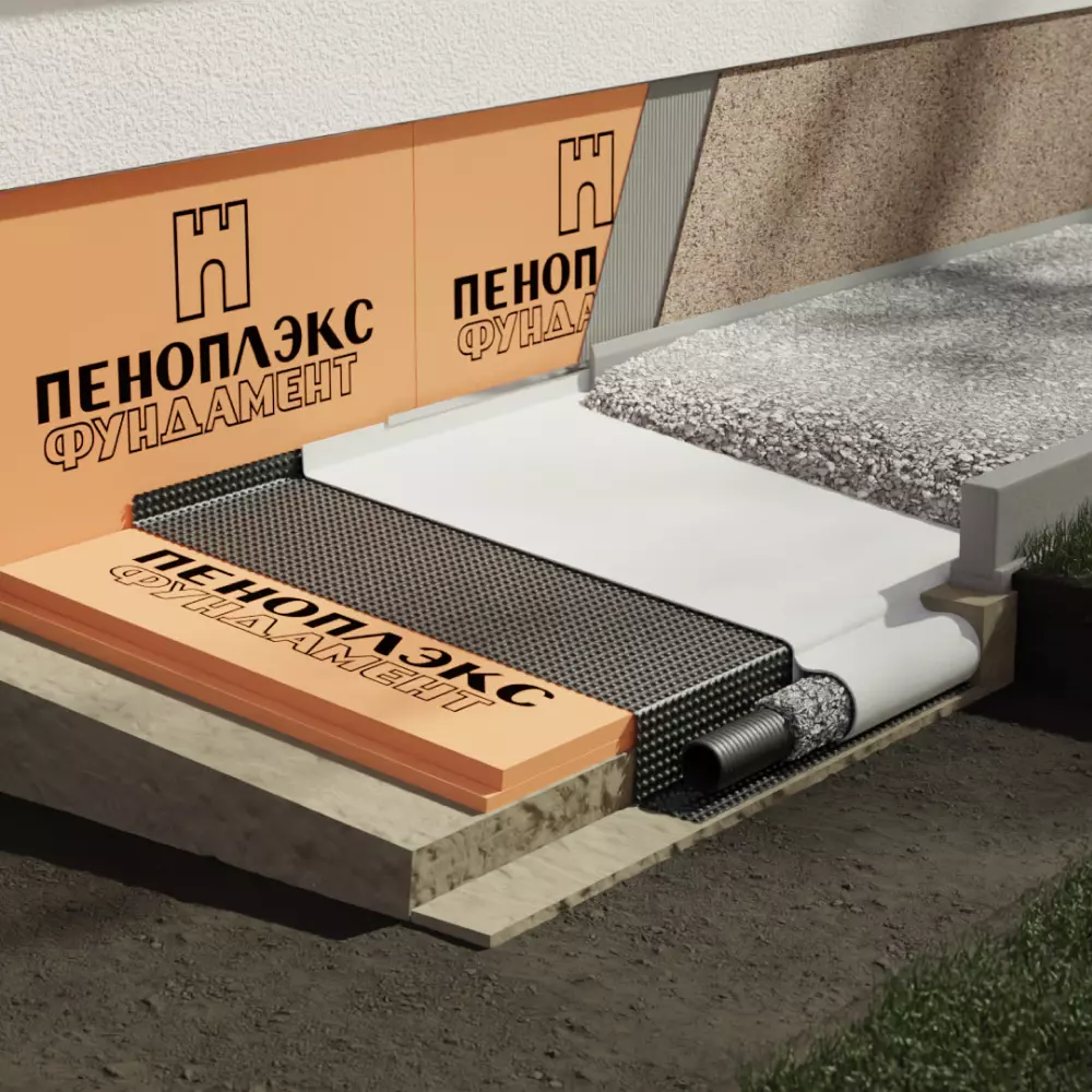 Эта мембрана применяется для отвода влаги с инверсионных кровель и вертикальных конструкций фундамента, а также при создании отмосток и пешеходных дорожек.