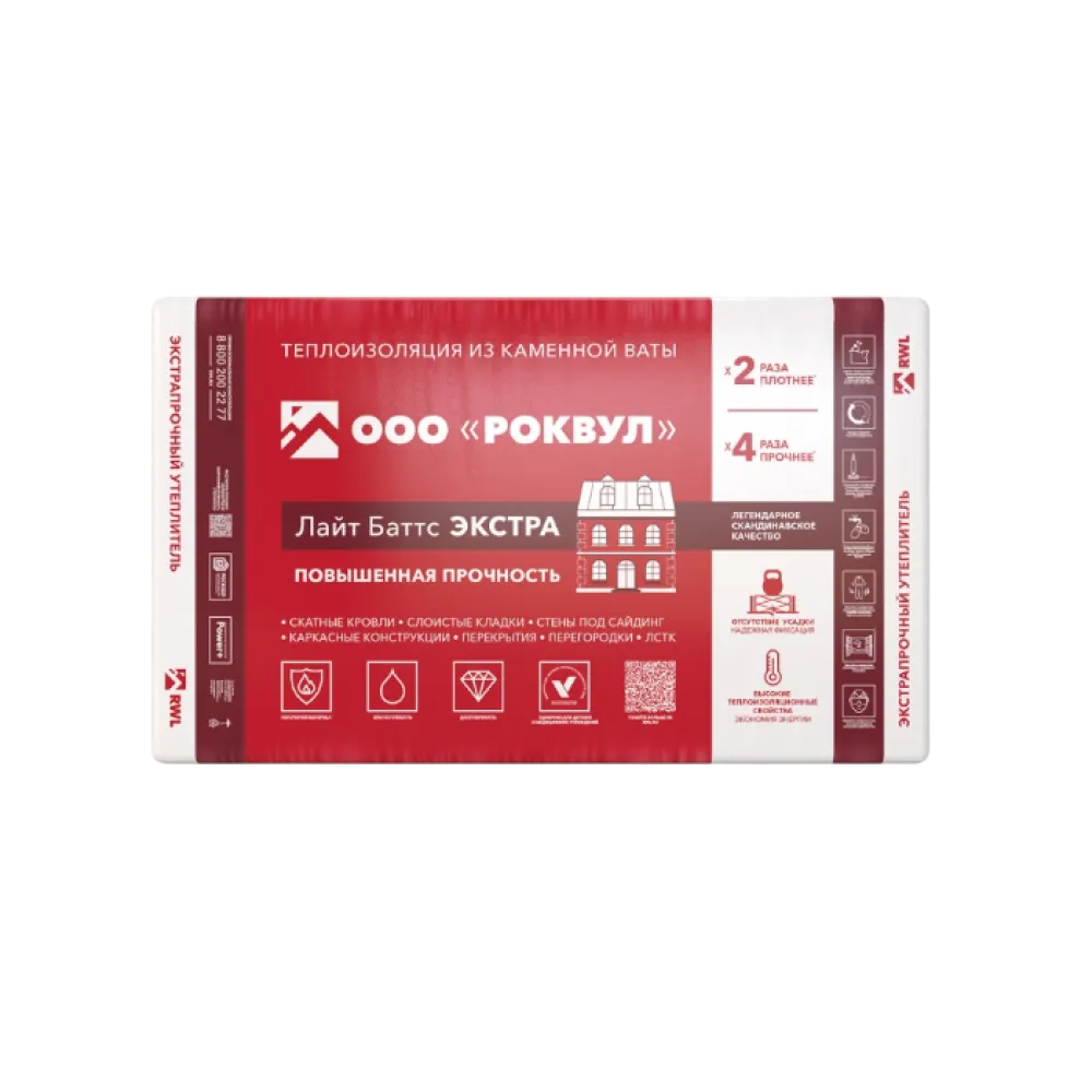 Утеплитель Роквул Лайт Баттс Экстра, 100 мм