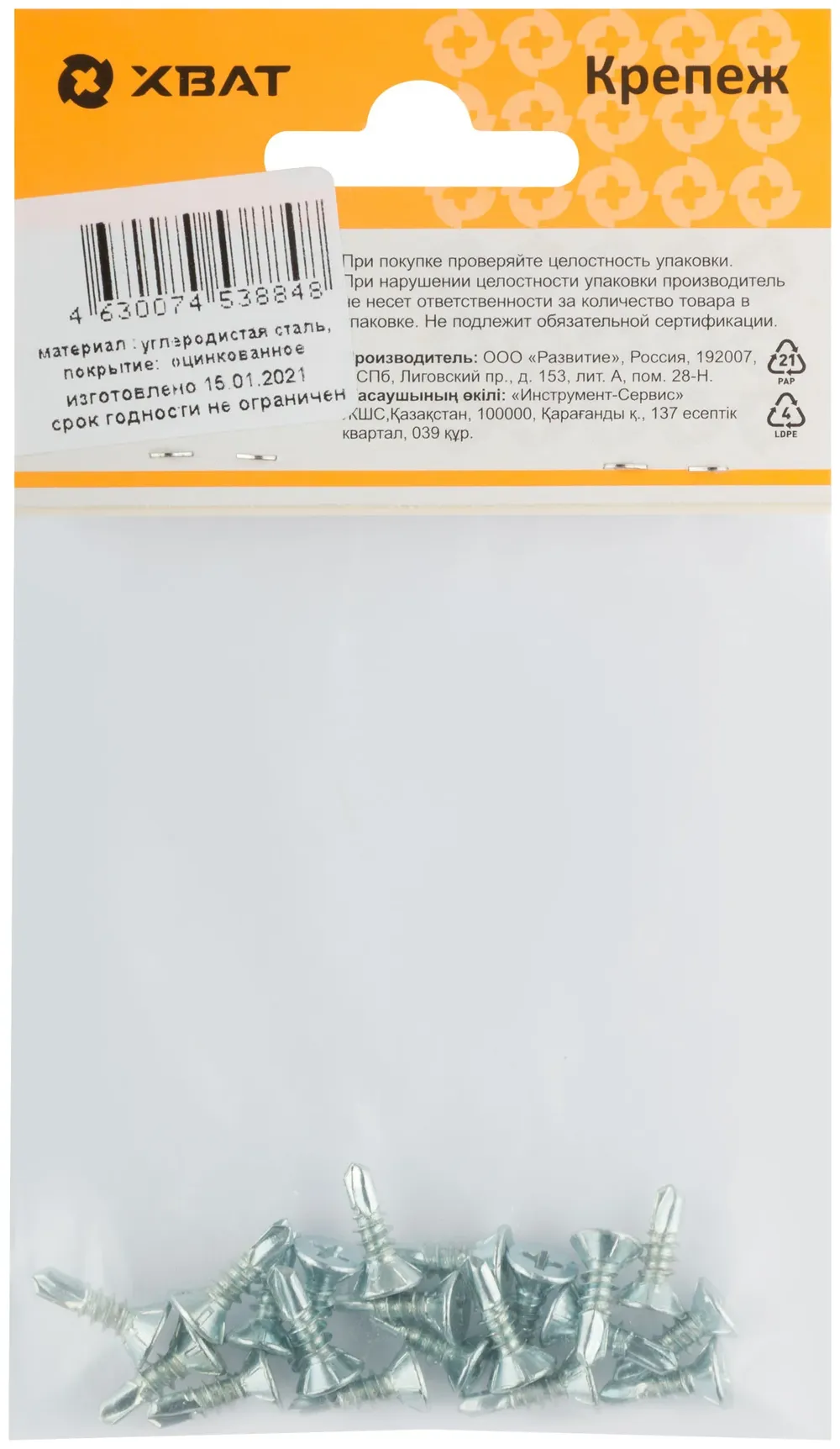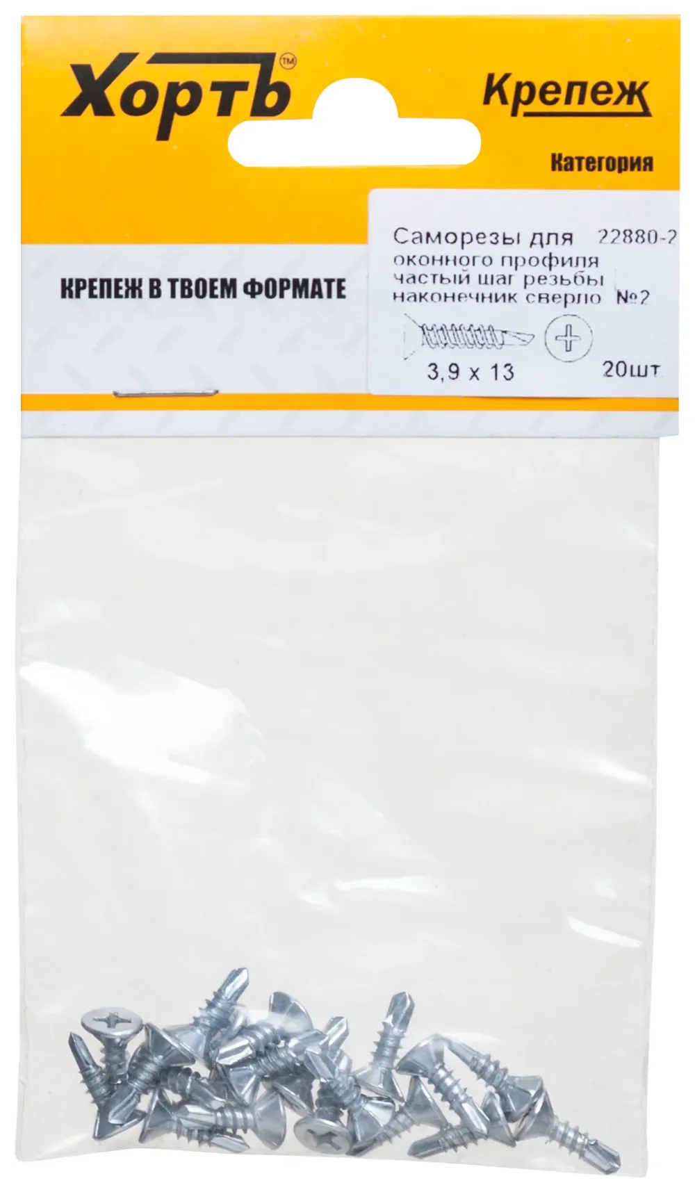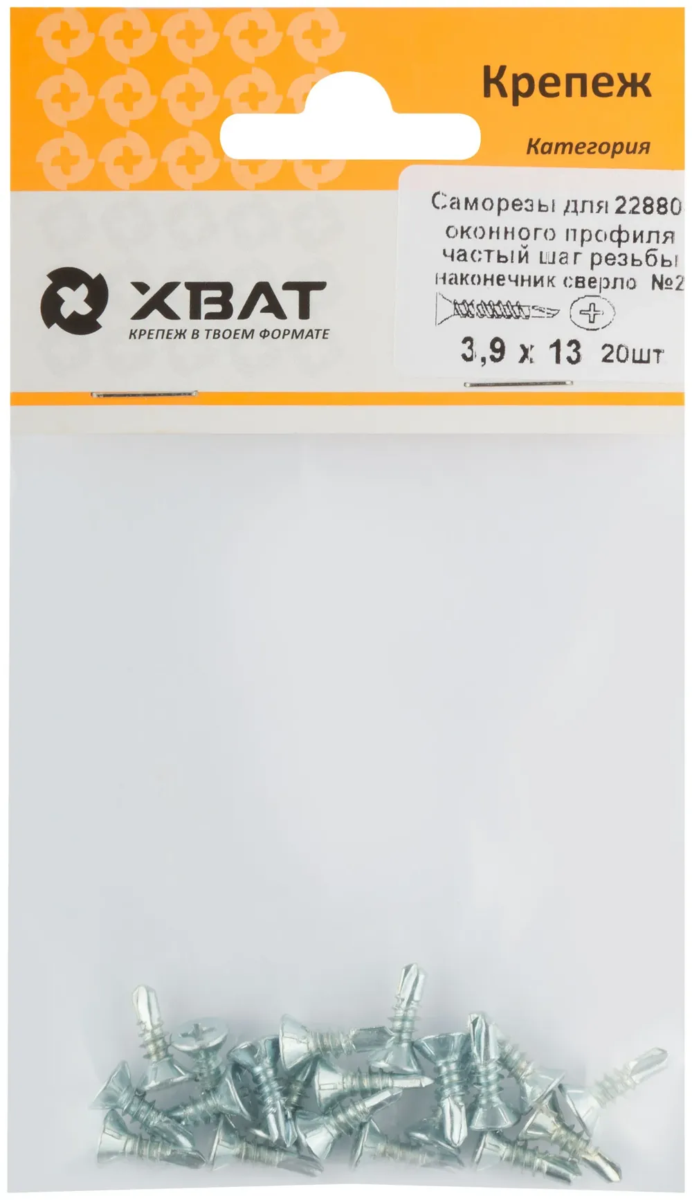 Саморез для оконного профиля частый шаг резьбы, наконечник сверло №2 3.9х13 (фасовка 20 шт.) — крепёжный элемент для монтажа, фиксации и сборки конструкций.