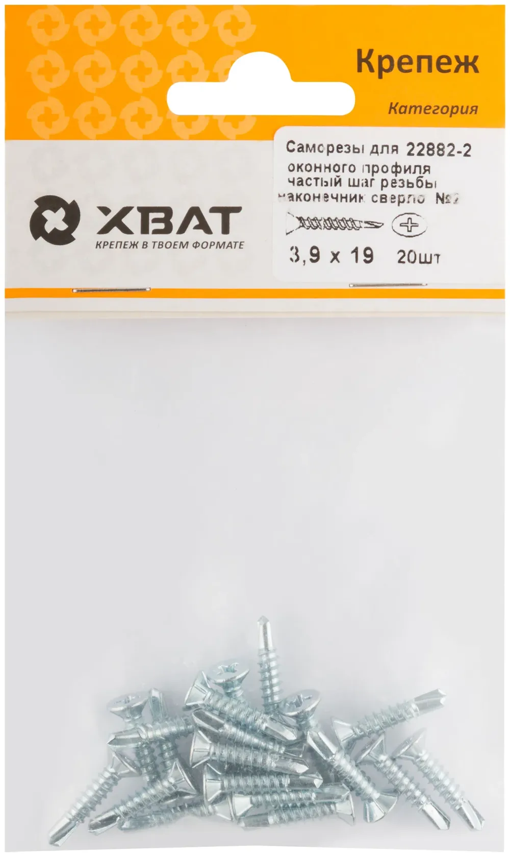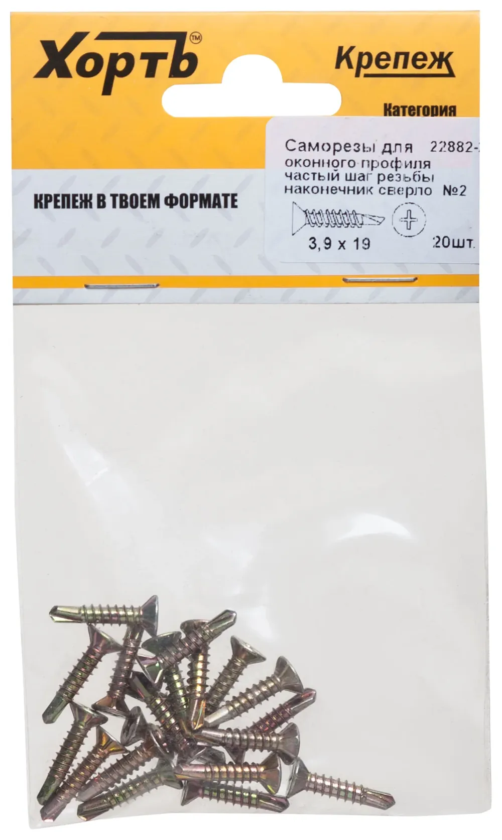 Саморез для оконного профиля частый шаг резьбы, наконечник сверло №2 3.9х19 20 шт. (фасовка) — крепёжный элемент для монтажа, фиксации и сборки конструкций.