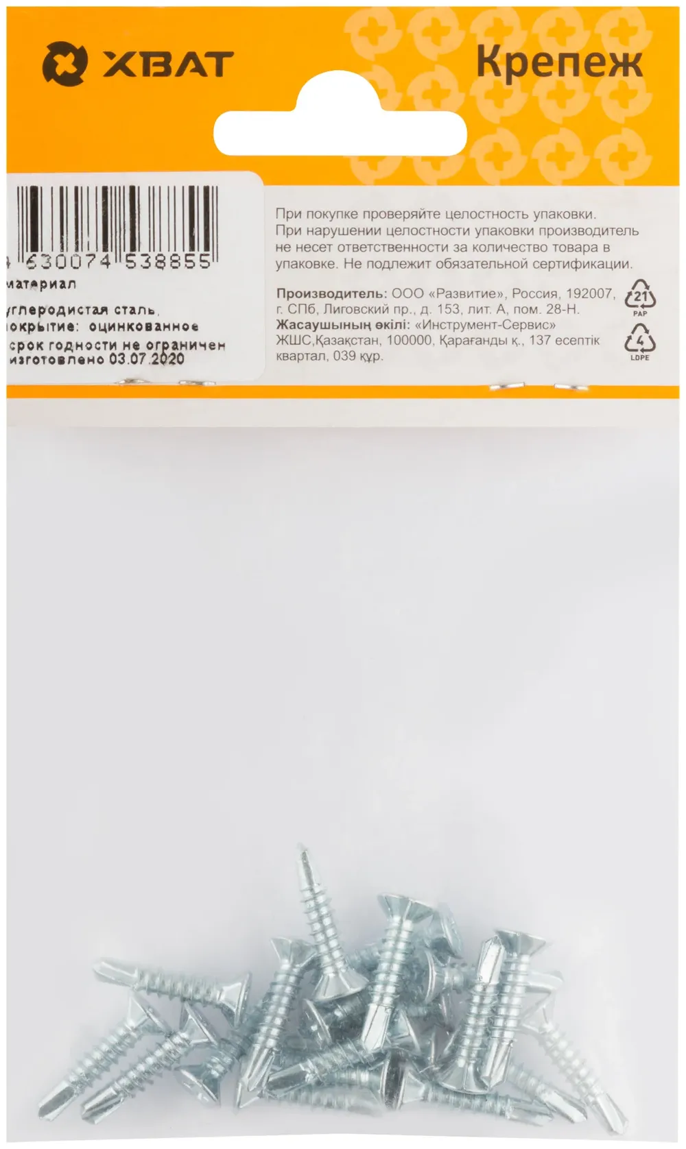 Купить недорого Саморез для оконного профиля частый шаг резьбы, наконечник сверло №2 3.9х19 20 шт. (фасовка) в Москве
