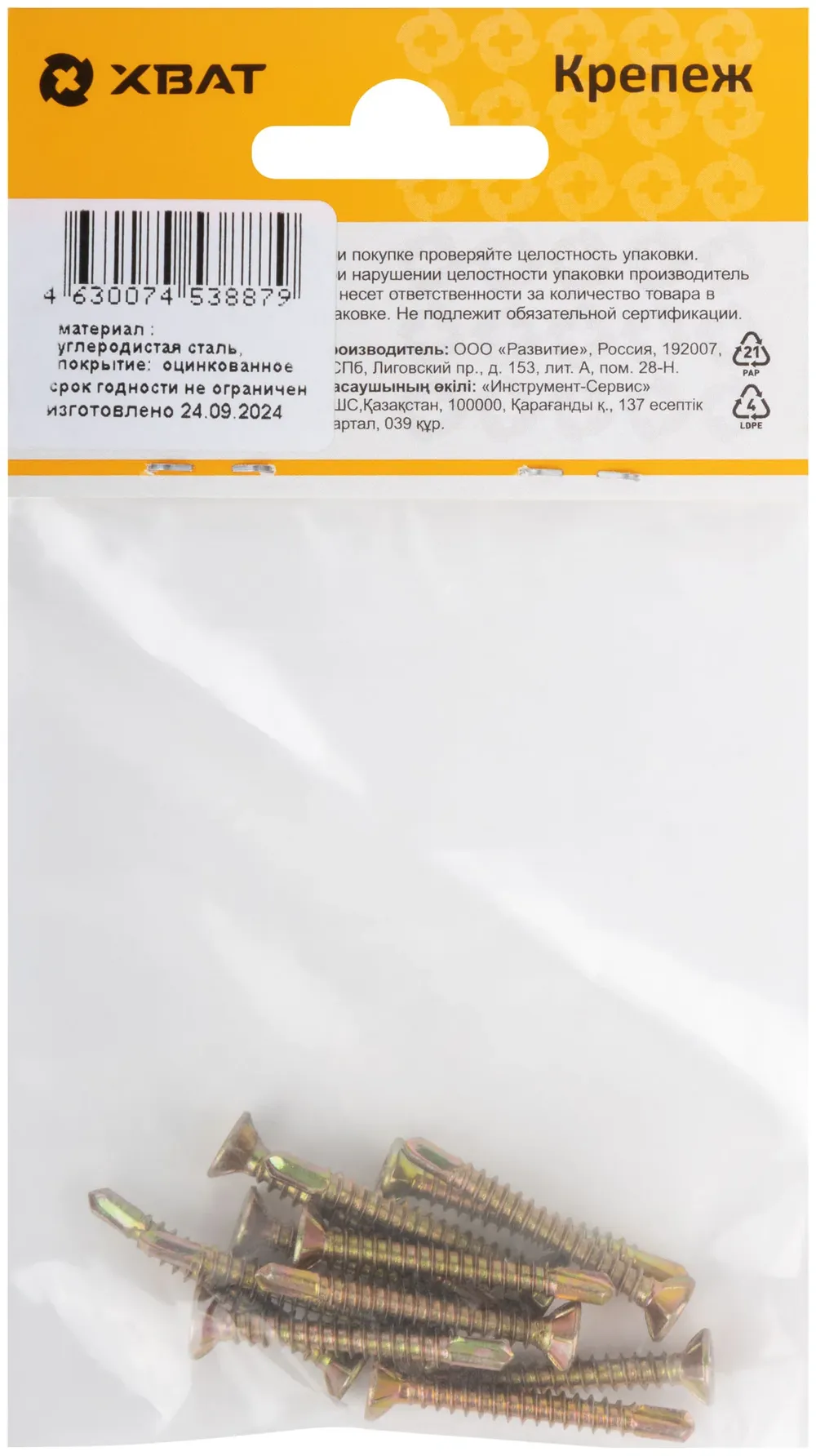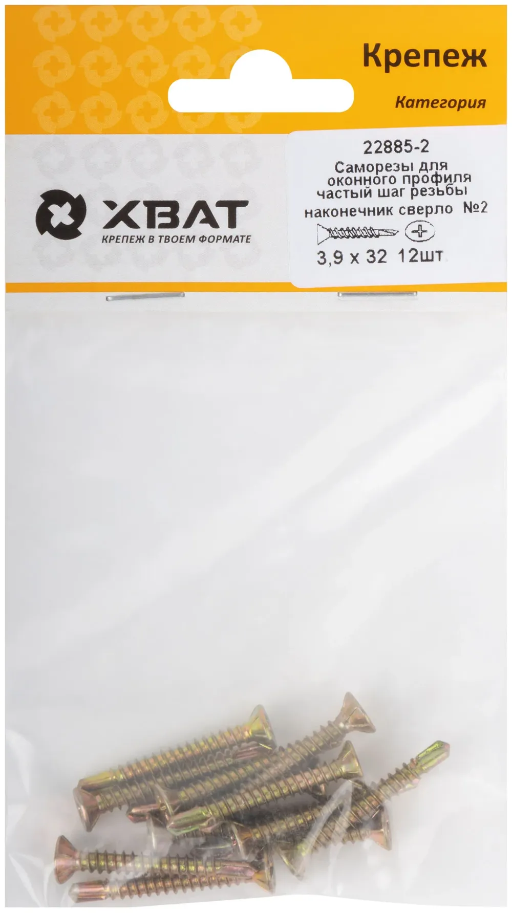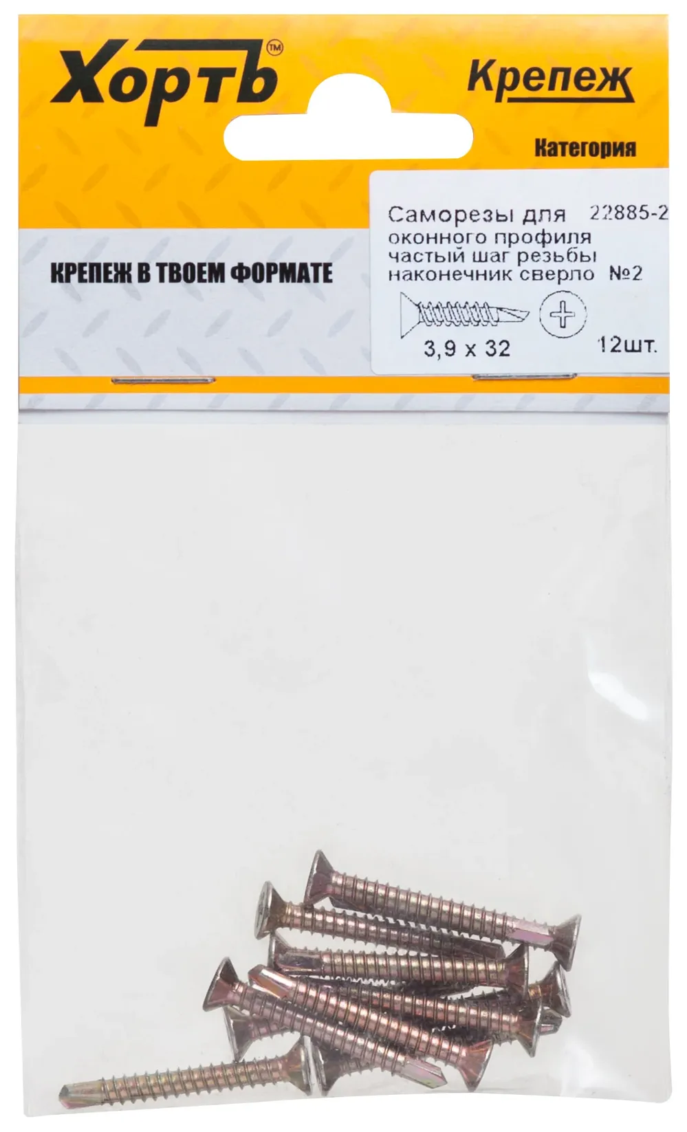 Саморез для оконного профиля частый шаг резьбы, наконечник сверло №2 3.9х32 (фасовка 12 шт.) — крепёжный элемент для монтажа, фиксации и сборки конструкций.