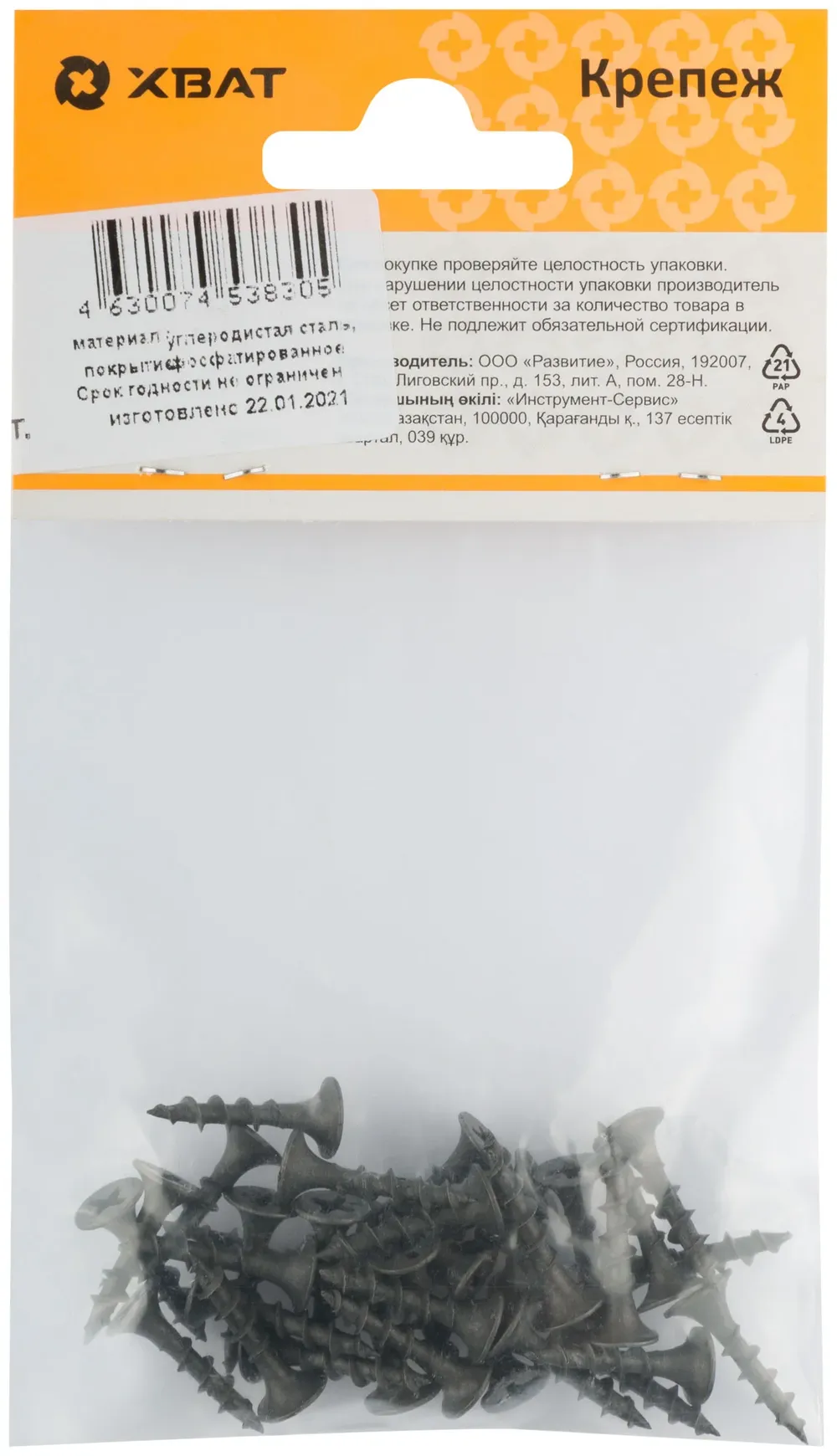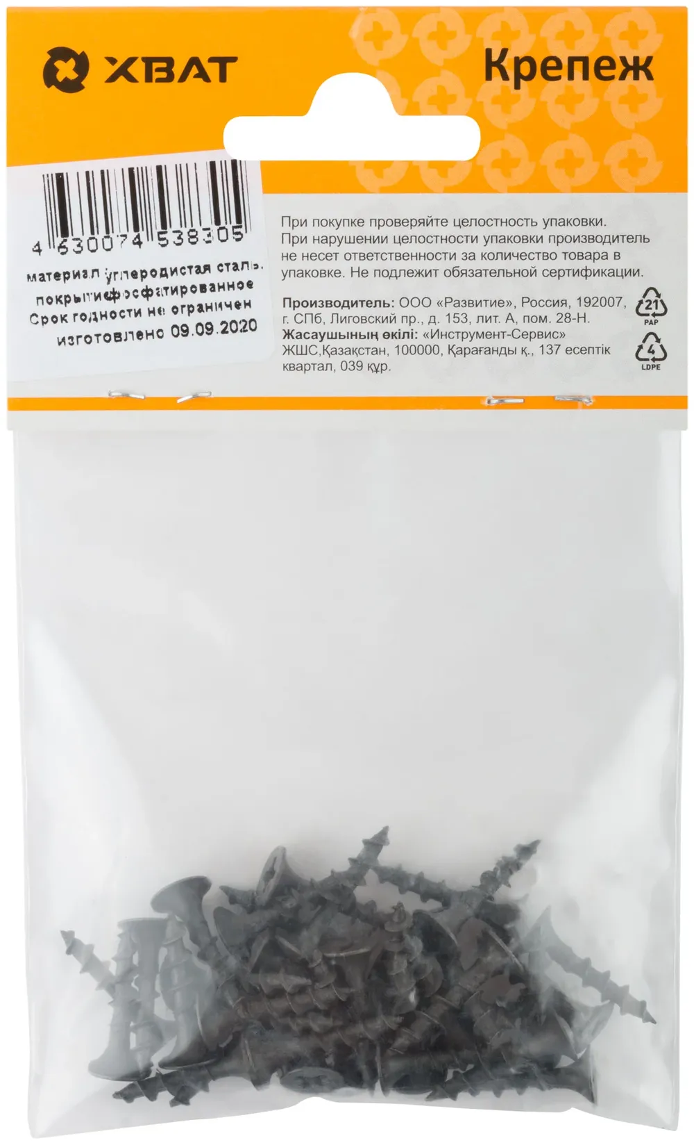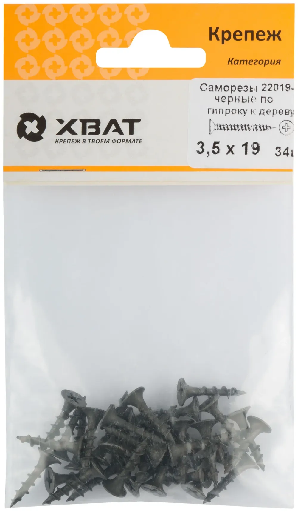 Саморезы черные по гипроку к дереву 3,5 х 19 (фасовка 34 шт ) — крепёжный элемент для монтажа, фиксации и сборки конструкций.