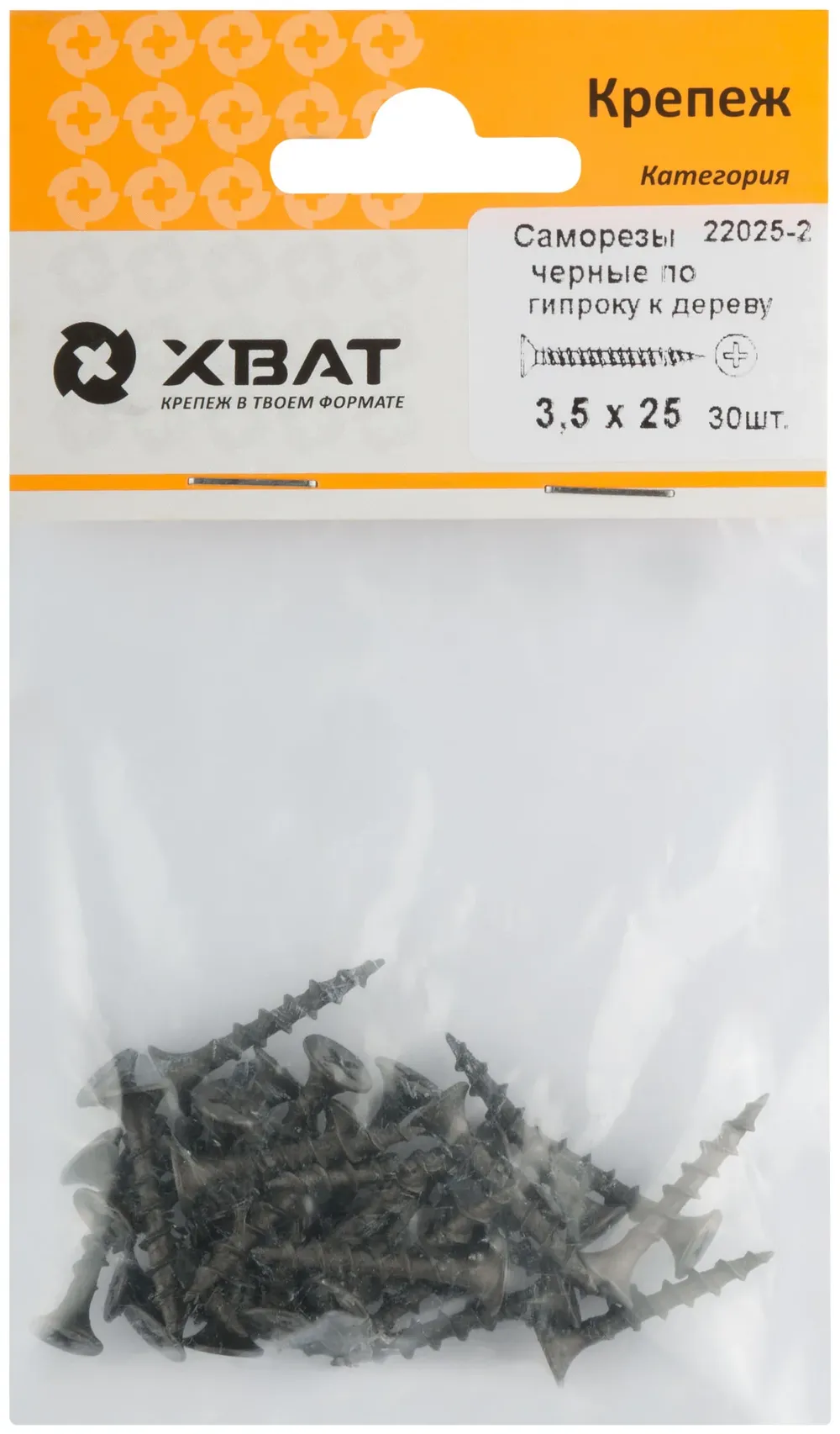 Саморезы черные по гипроку к дереву 3,5 х 25 (фасовка 30шт) — крепёжный элемент для монтажа, фиксации и сборки конструкций.