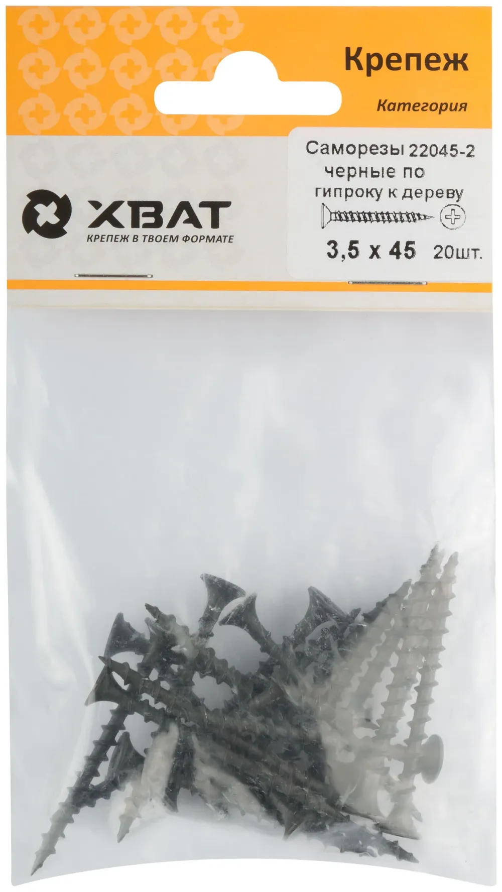 Саморезы черные по гипроку к дереву 3,5 х 45 (фасовка 20шт.) — крепёжный элемент для монтажа, фиксации и сборки конструкций.
