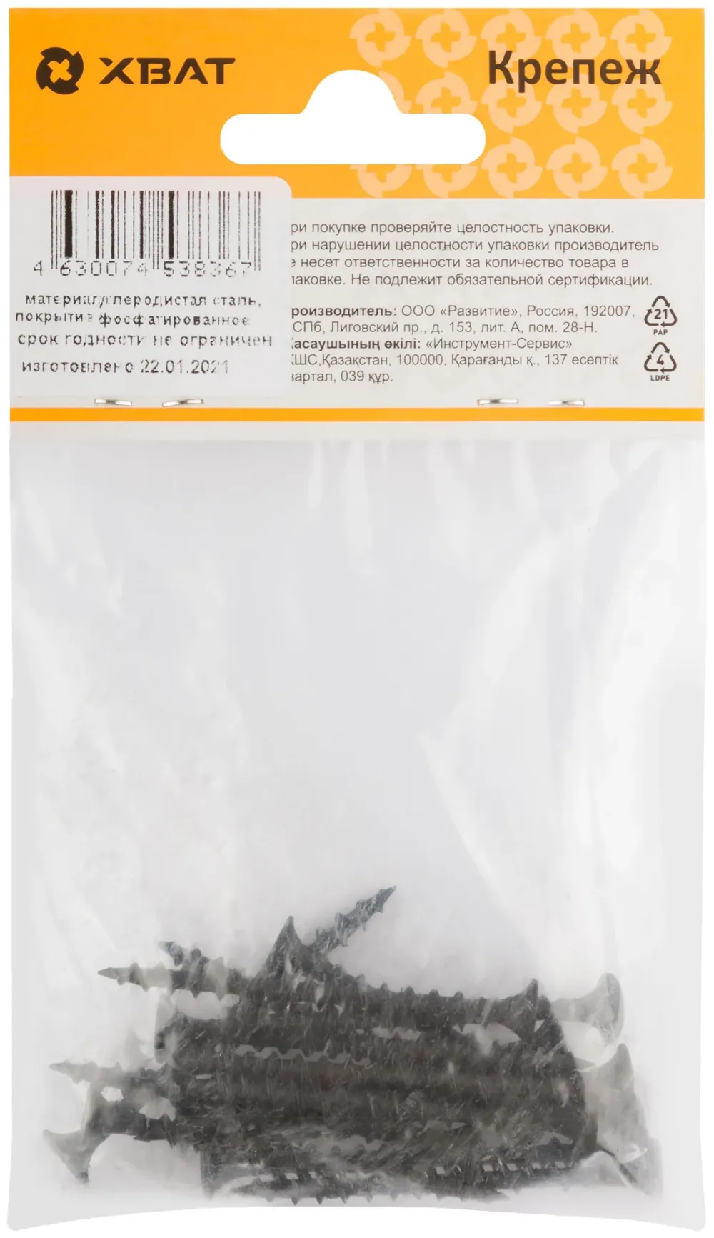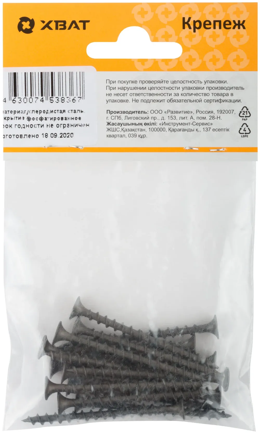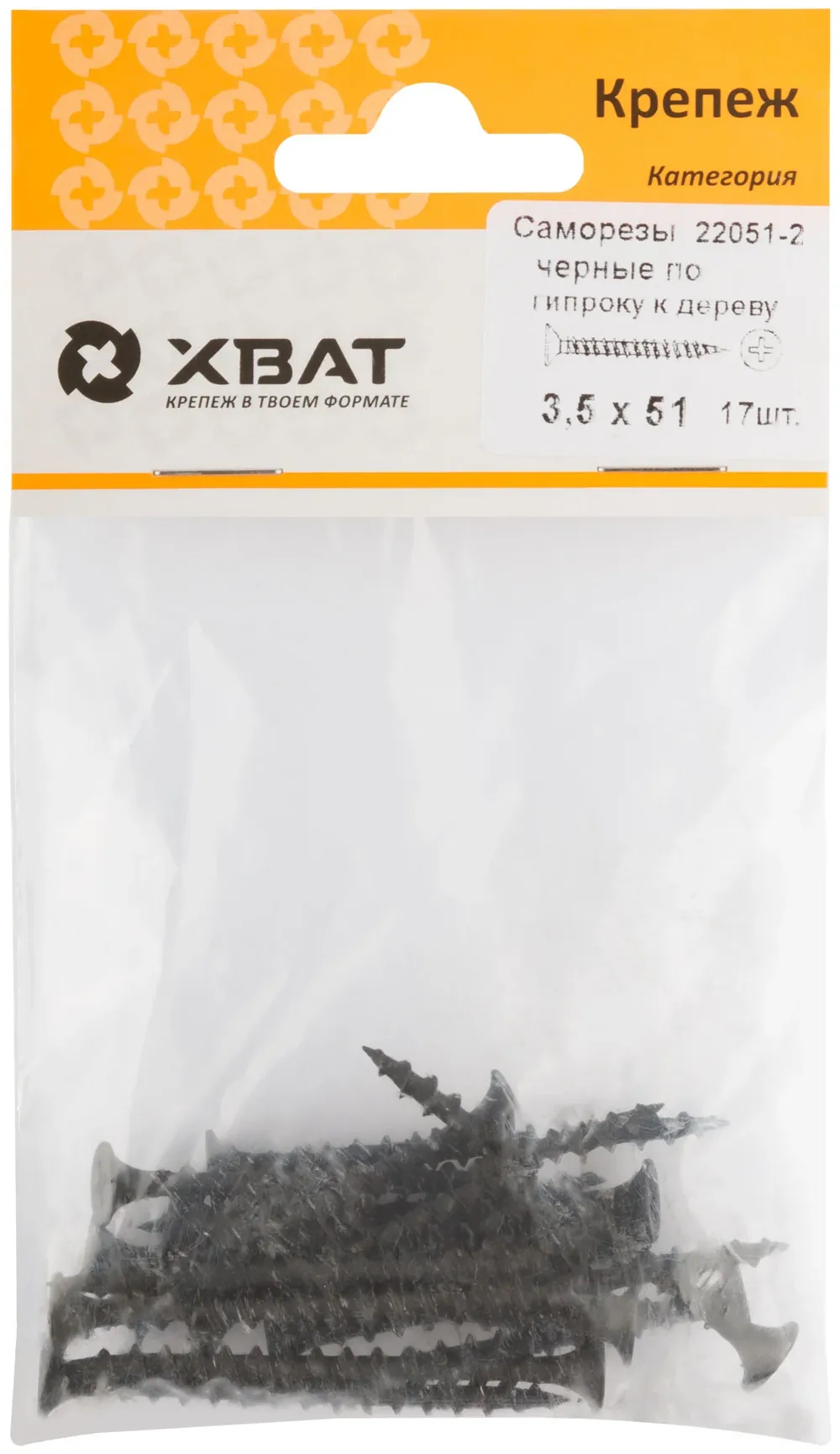 Саморезы черные по гипроку к дереву 3,5 х 51 (фасовка 17 шт.) — крепёжный элемент для монтажа, фиксации и сборки конструкций.