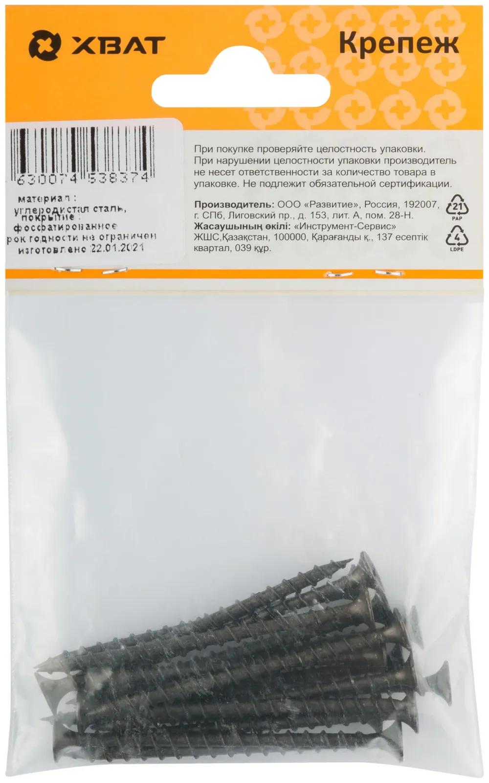 Саморезы черные по гипроку к дереву 3,5 х 55 (фасовка 16 шт) — крепёжный элемент для монтажа, фиксации и сборки конструкций.