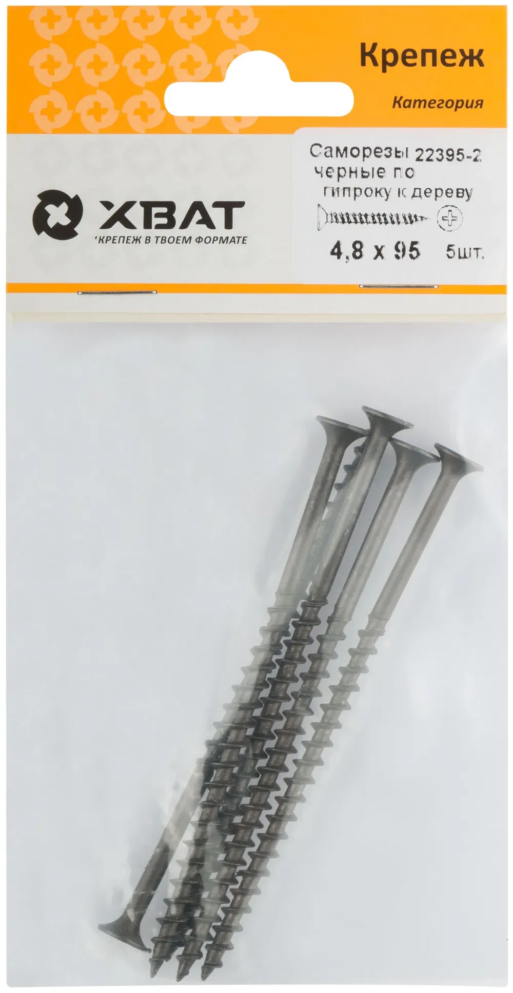 Саморезы черные по гипроку к дереву 4,8 х 95 (фасовка 5 шт) — крепёжный элемент для монтажа, фиксации и сборки конструкций.