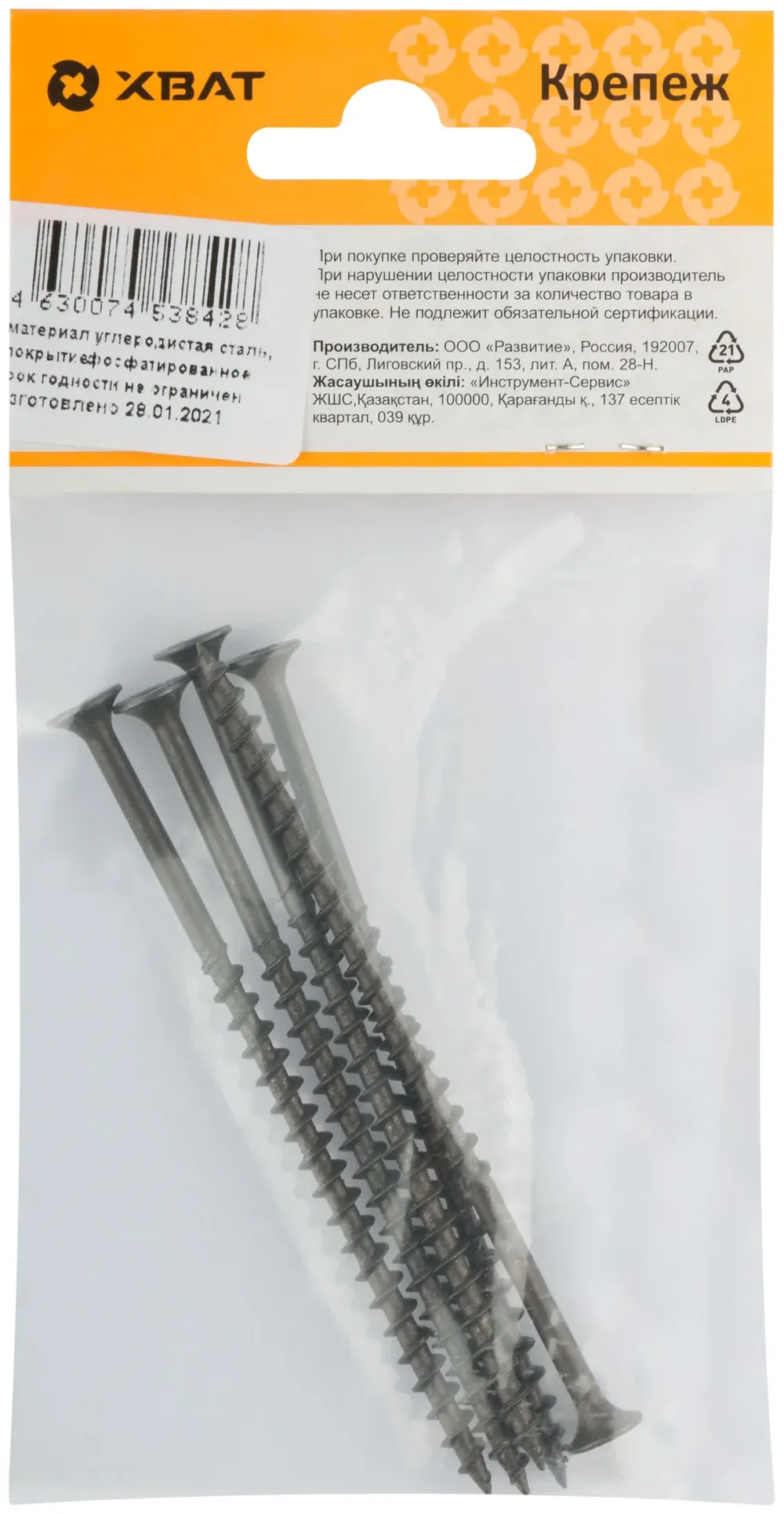 Купить недорого Саморезы черные по гипроку к дереву 4,8 х 95 (фасовка 5 шт) в Москве