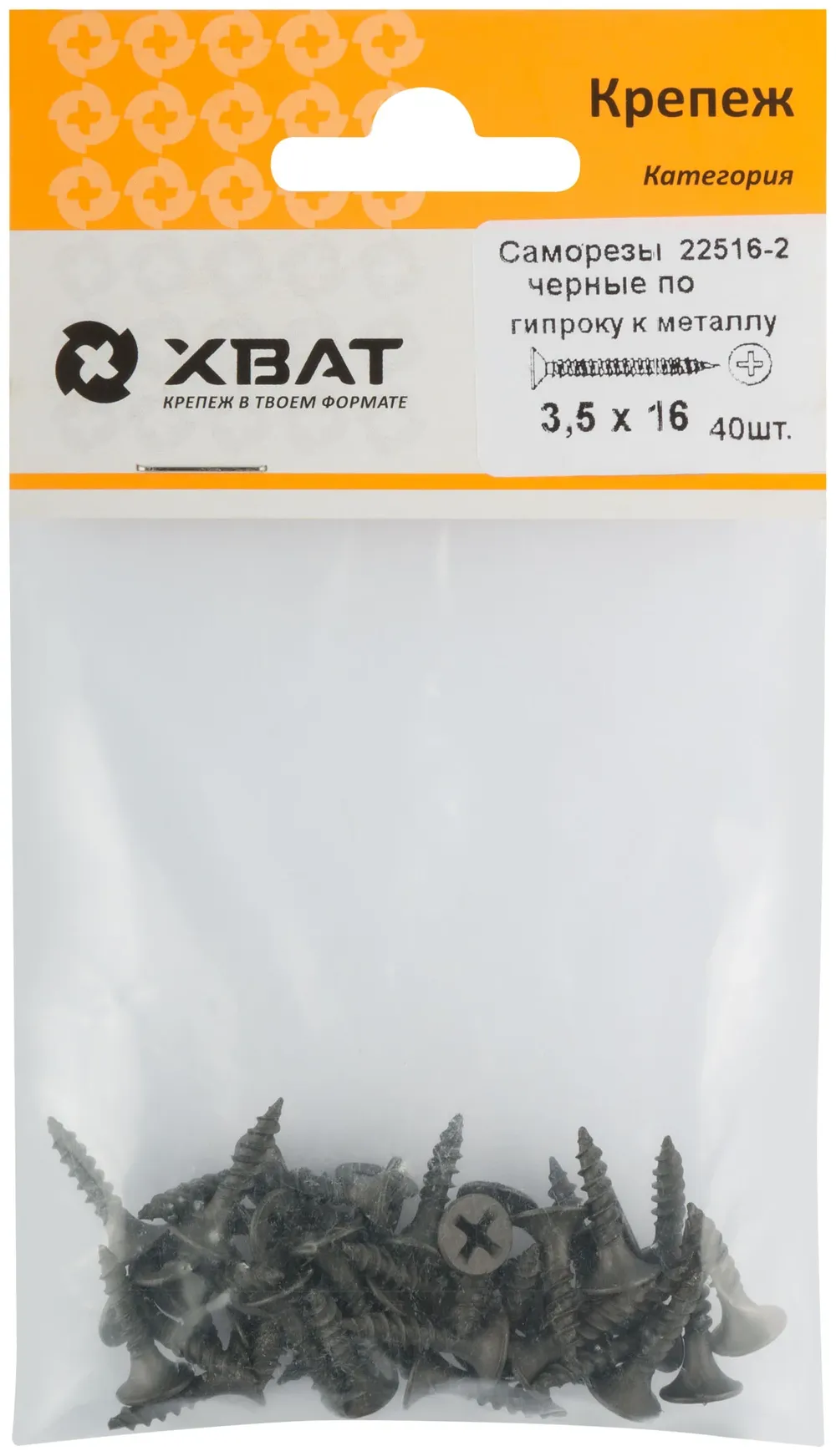 Саморезы черные по гипроку к металлу 3,5 х 16 (фасовка 40 шт) — крепёжный элемент для монтажа, фиксации и сборки конструкций.