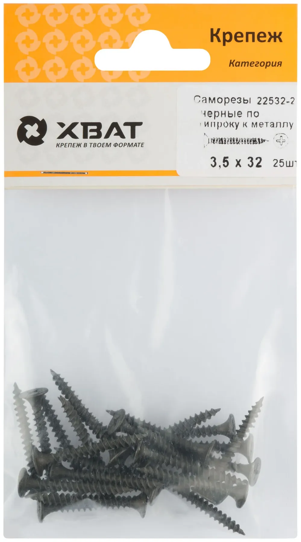 Саморезы черные по гипроку к металлу 3,5 х 32 (фасовка 25 шт) — крепёжный элемент для монтажа, фиксации и сборки конструкций.