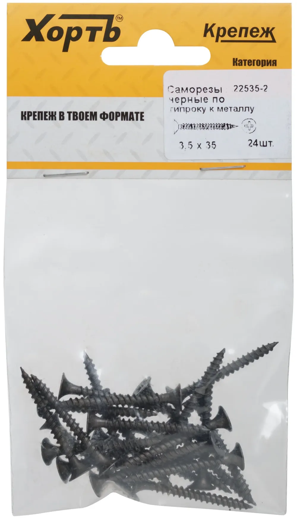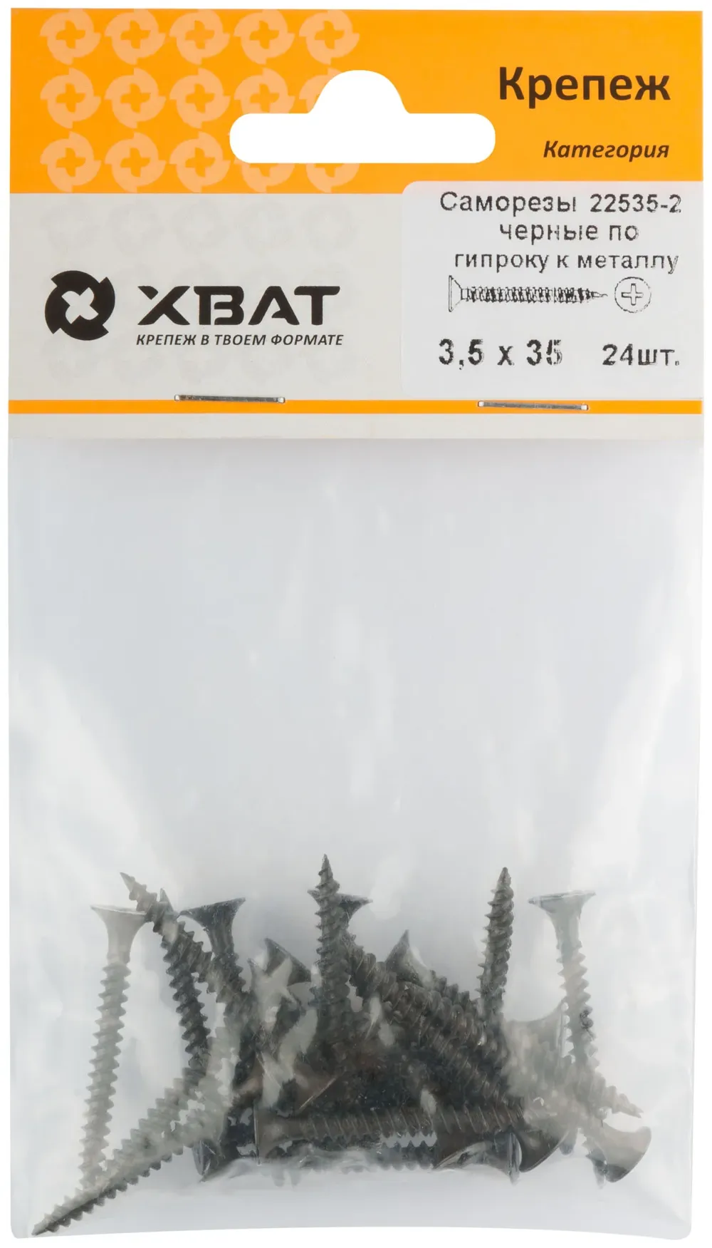 Саморезы черные по гипроку к металлу 3,5 х 35 (фасовка 24 шт) — крепёжный элемент для монтажа, фиксации и сборки конструкций.