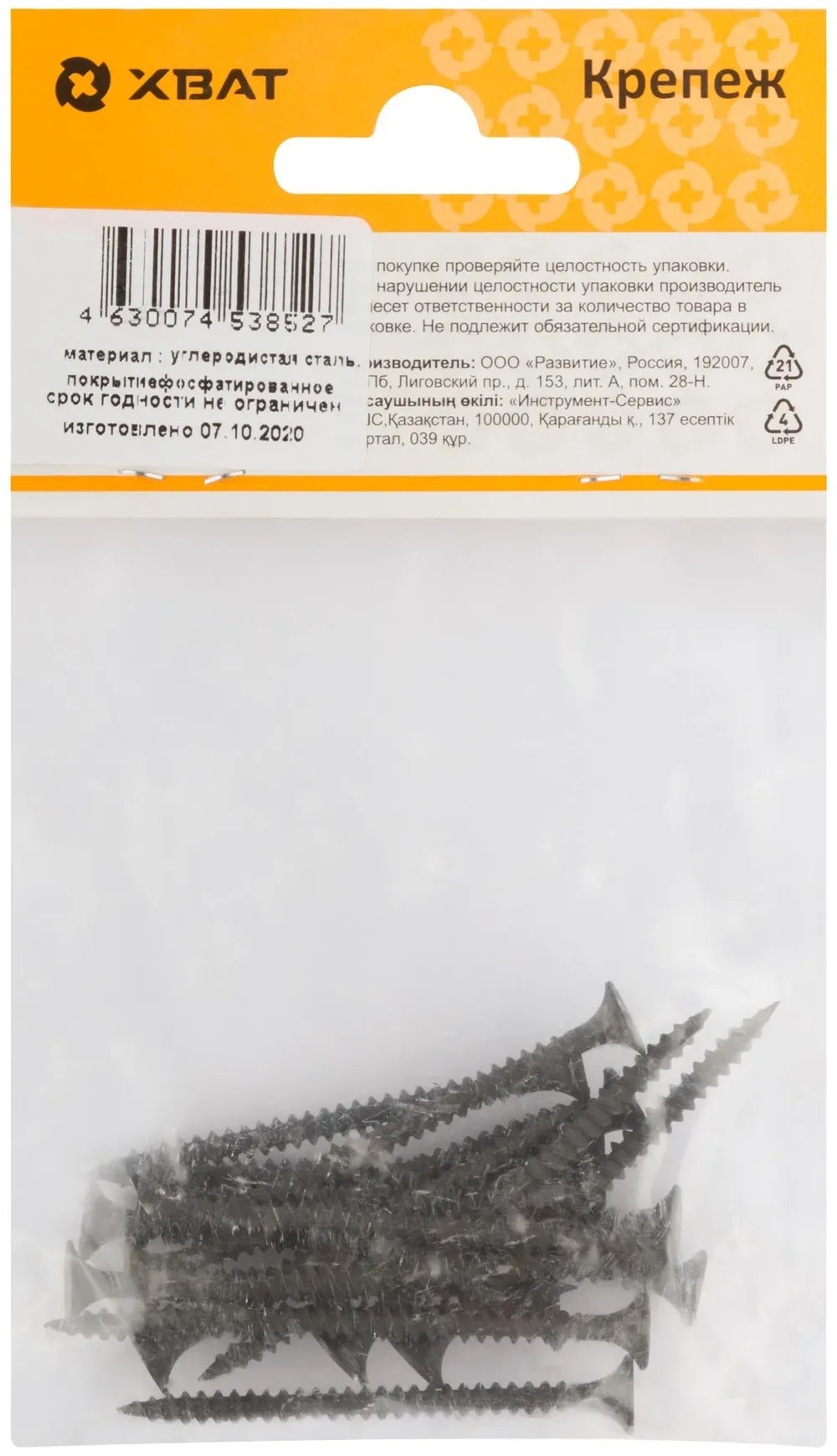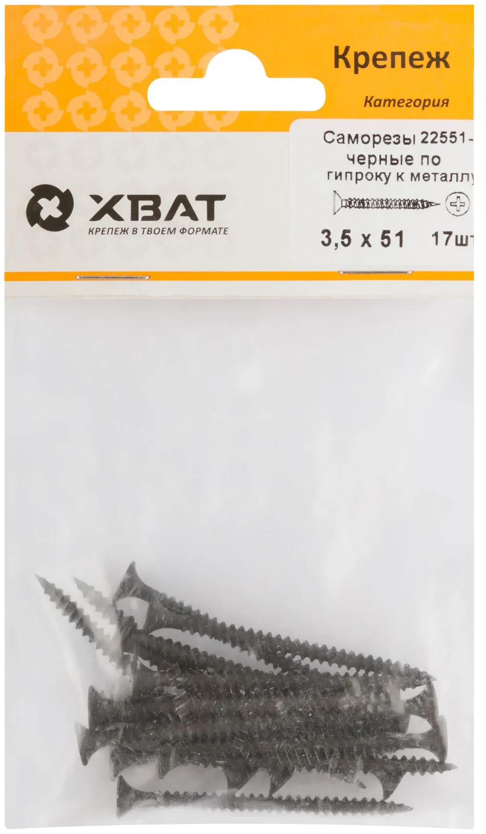 Саморезы черные по гипроку к металлу 3,5 х 51 (фасовка 17 шт) — крепёжный элемент для монтажа, фиксации и сборки конструкций.