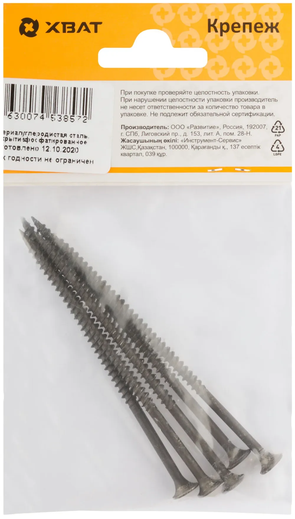 Купить недорого Саморезы черные по гипроку к металлу 4,2 х 90 (фасовка 5 шт) в Москве