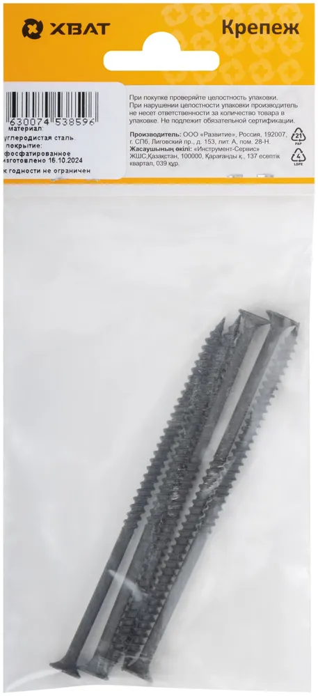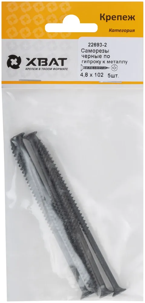 Саморезы черные по гипроку к металлу 4,8 х 102 (фасовка 5 шт) — крепёжный элемент для монтажа, фиксации и сборки конструкций.