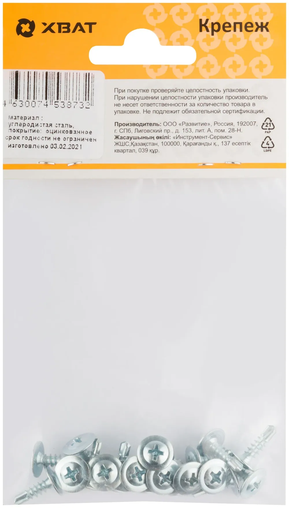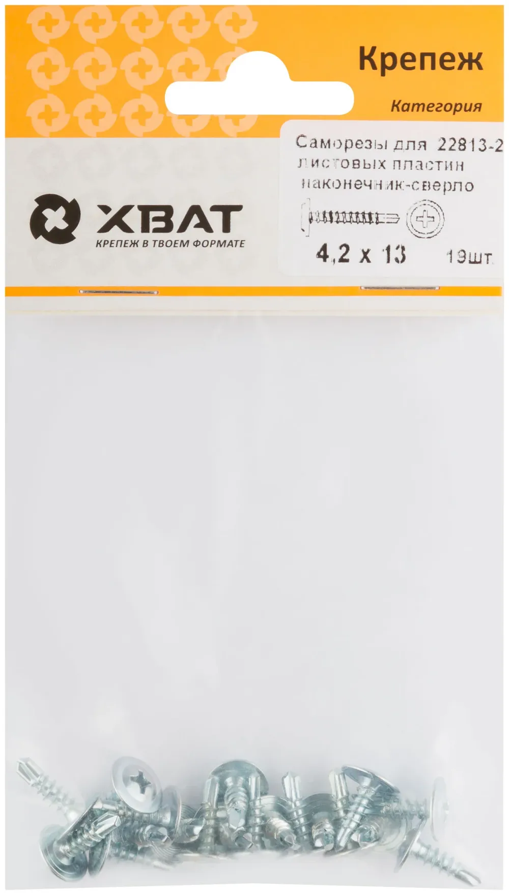 Саморезы для листовых пластин, наконечник-сверло 4,2 х 13 (фасовка 19 шт) — крепёжный элемент для монтажа, фиксации и сборки конструкций.