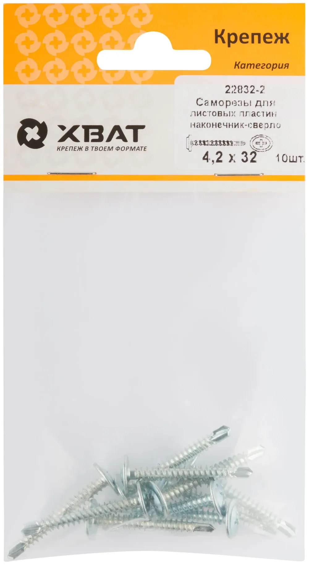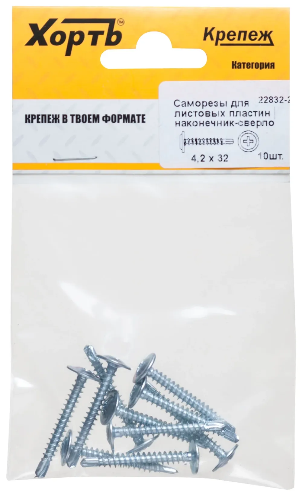 Саморезы для листовых пластин, наконечник-сверло 4,2 х 32 (фасовка 10 шт) — крепёжный элемент для монтажа, фиксации и сборки конструкций.