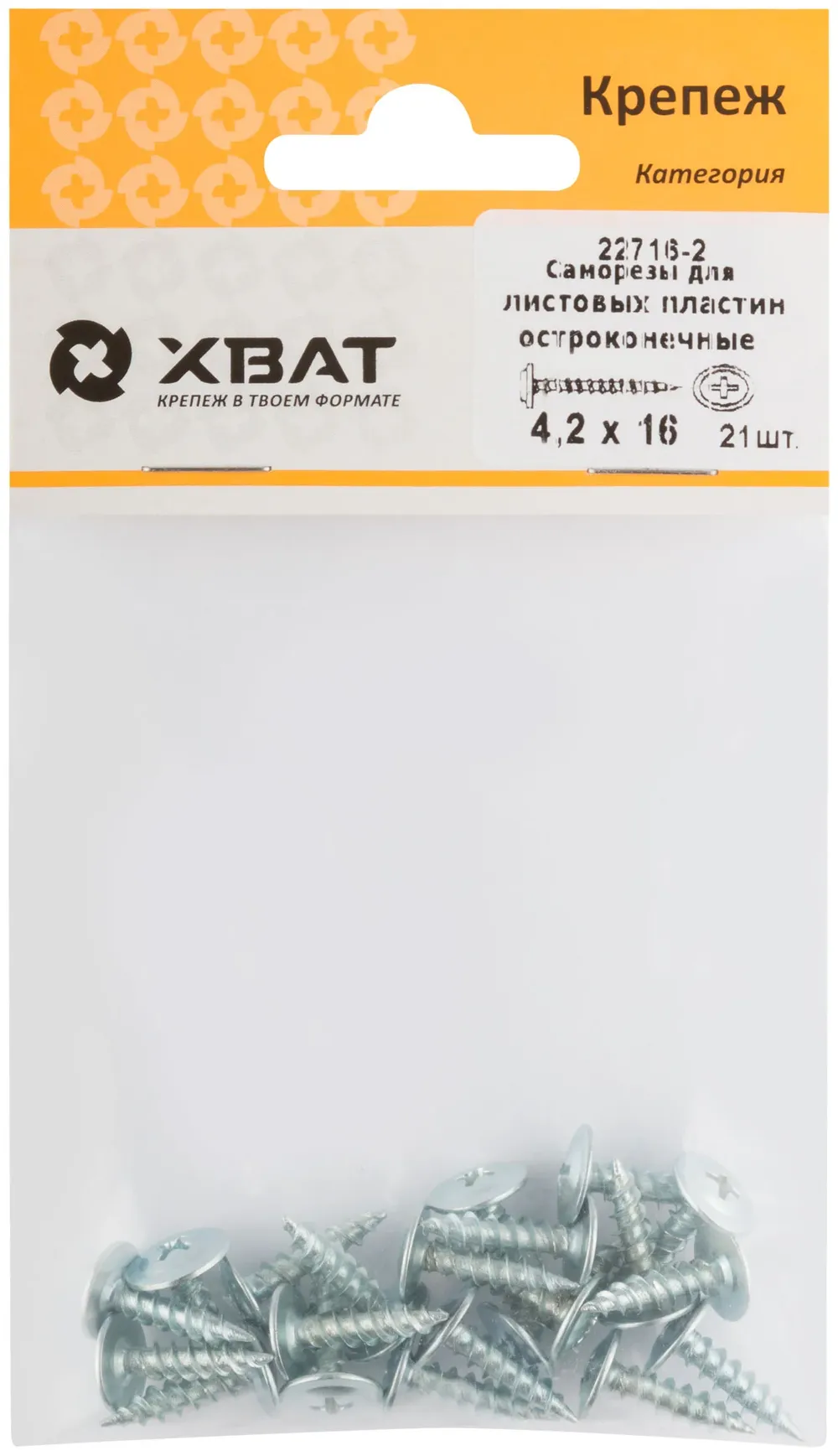 Саморезы для листовых пластин, остроконечные 4,2 х 16 (фасовка 21 шт) — крепёжный элемент для монтажа, фиксации и сборки конструкций.