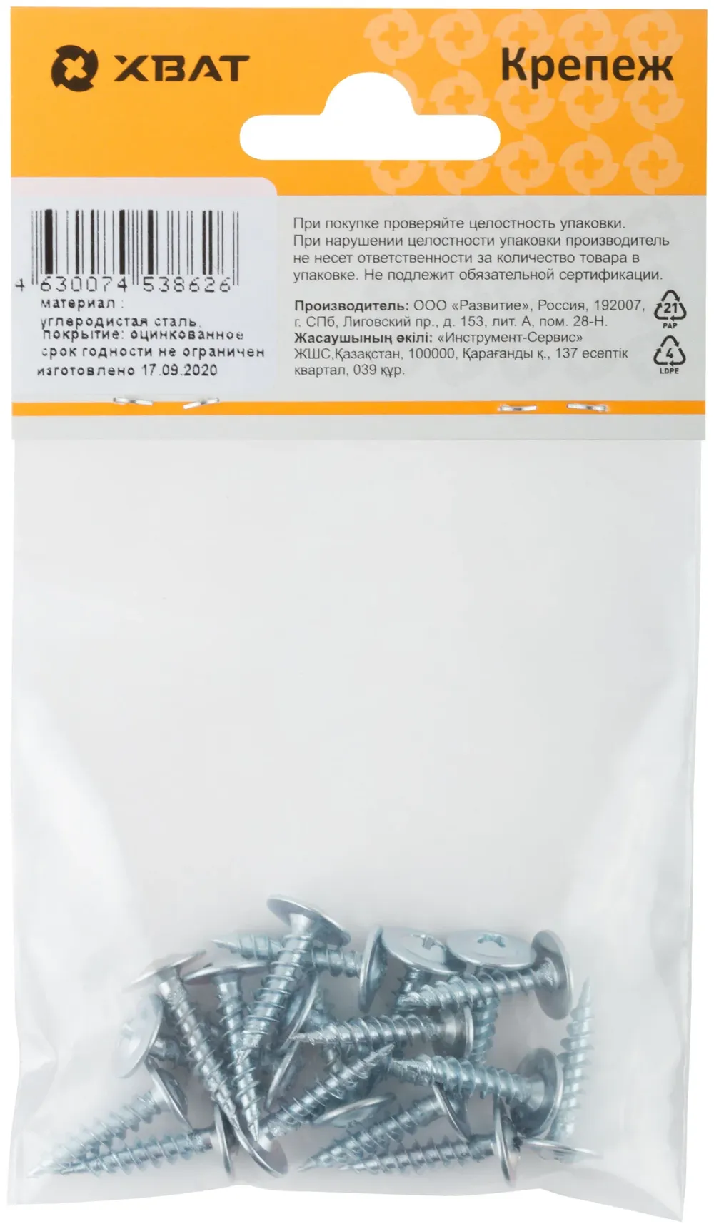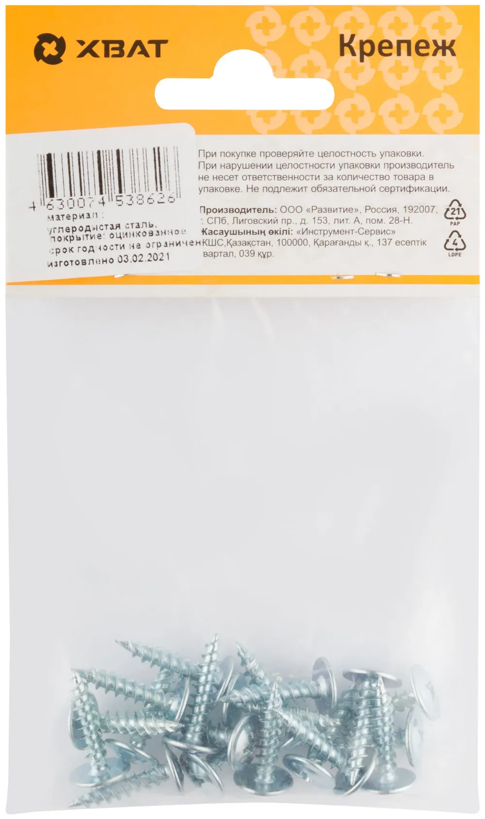 Саморезы для листовых пластин, остроконечные 4,2 х 19 (фасовка 19 шт) — крепёжный элемент для монтажа, фиксации и сборки конструкций.
